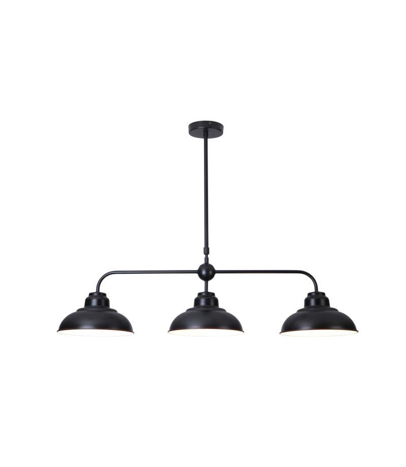 Wykonana w stylu industrialnym lampa ścienna Dragan z 3 żarówkami będzie charakterystycznym elementem wyposażenia salonu lub sypialni. Uzupełnieniem metalowej oprawy w kolorze matowej czerni jest szeroki abażur w kształcie parasolki. który od wewnątrz jest zabarwiony na biało. Lampa może być przymocowana do sufitu za pomocą okrągłej ozdobnej podstawy. Głowice lamp znajdują się obok siebie w jednym rzędzie na szerokim wsporniku. Lampa Dragan wymaga 3 żarówek. o mocy do 60 W każda. Typ oprawki to E27 Jeśli umieścisz lampę w sypialni. polecamy żarówki emitujące ciepłe białe światło. które pozwala stworzyć przytulną. intymną atmosferę. Wymiary lampy Dragan z 3-żarówkami są następujące: szerokość 1000 mm. średnica każdego klosza wynosi 250 mm. odległość od sufitu można regulować w zakresie 700-1070 mm. średnica instalacji wynosi 120 mm. Prezentowany model jest sprzedawany bez żarówki.