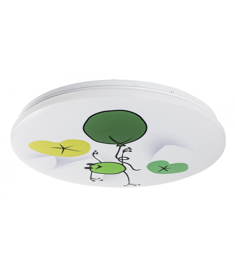 Lampa sufitowa do pokoju dziecięcego Rabalux Froggo to autorski model zaprojektowany przez Rabalux. Idealnie sprawdzi się u osób poszukujących kolorowej lampy sufitowej LED o długiej żywotności do pokoju dziecięcego. Lampa ma okrągły kształt, metalowy uchwyt i wzorzysty klosz z tworzywa sztucznego. Biały klosz ozdobiony jest zabawnym motywem z żabką i balonikami, który z pewnością zawsze rozweseli małego mieszkańca pokoju. Główne kolory wzoru to zieleń i żółć – świeże i radosne barwy, które doskonale pasują do każdego dziecięcego wnętrza. Lampa dziecięca posiada wbudowane źródło światła LED emitujące ciepłe białe światło, które zapewnia przytulną, kameralną atmosferę. Dzięki technologii LED charakteryzuje się energooszczędnym działaniem oraz wyjątkowo długą żywotnością.