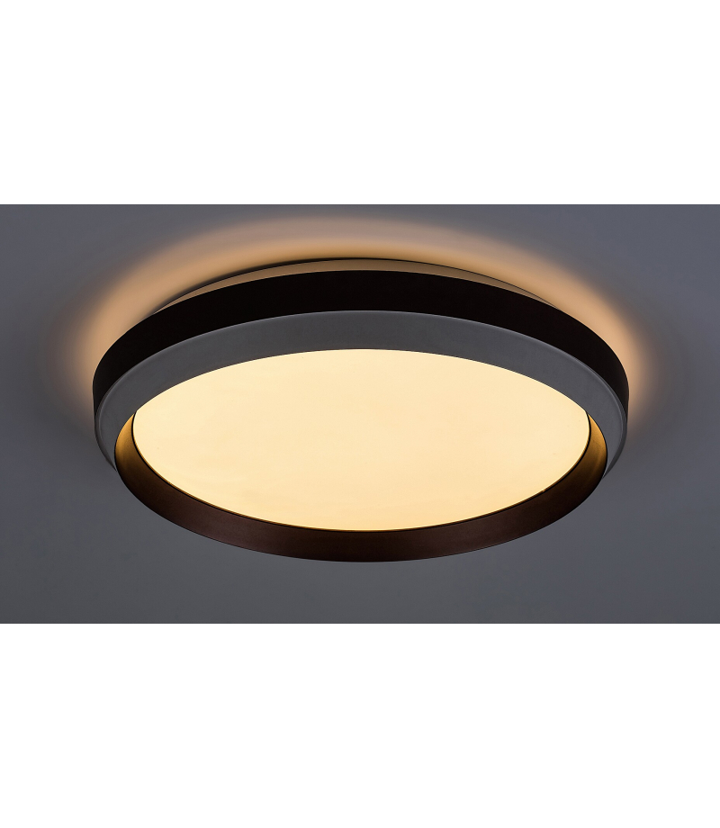 Okrągła oprawa sufitowa Fontana jest polecana osobom, które szukają do swojego salonu utrzymanego w nowoczesnym stylu centralnego oświetlenia o prostym designie i które pragną zaintegrować elementy o ciepłych barwach. Wykonana z metalu oprawa w kolorze brązowym jest uzupełniona matowo białym kloszem z tworzywa sztucznego. Oprawa Fontana posiada wbudowane źródło światła LED klasy energetycznej G o mocy 24 W, strumieniu świetlnym z kloszem - 1100 lumenów, bez klosza - 2600 lumenów. Trwałość źródła światła wynosi 25.000 godzin. Oprawa sufitowa ma temperaturę barwową 3000K, co oznacza, że świeci ciepłobiałym światłem, wspierając stworzenie domowej, przytulnej atmosfery. Średnica oprawy Fontana wynosi 390 mm, a odległość od sufitu 70 mm.
