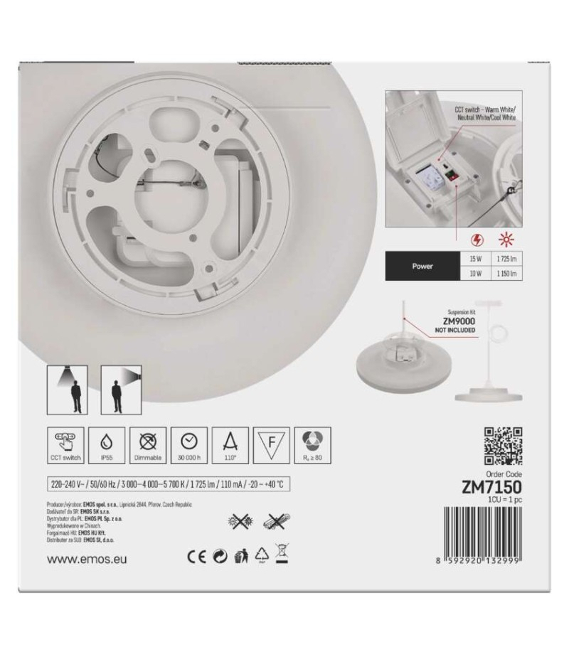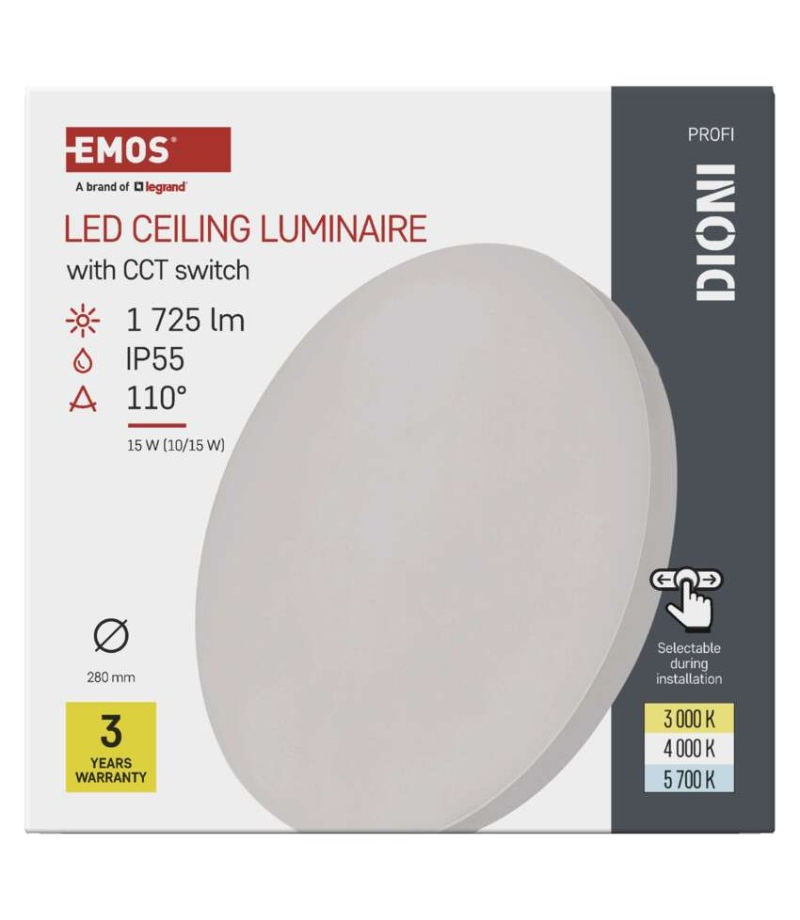 Oprawa LED natynkowa DIONI okrągła, biała, 15W, CCT EMOS ZM7150 Barwa światła: ciepła/neutralna/zimna biel Częstotliwość: 50/60 Hz Czujnik ruchu: nie Do biura: tak Do kuchni: tak Do łazienki: tak Do ogrodu i na balkon: tak Do salonu, sypialni i pokoju dziecięcego:...