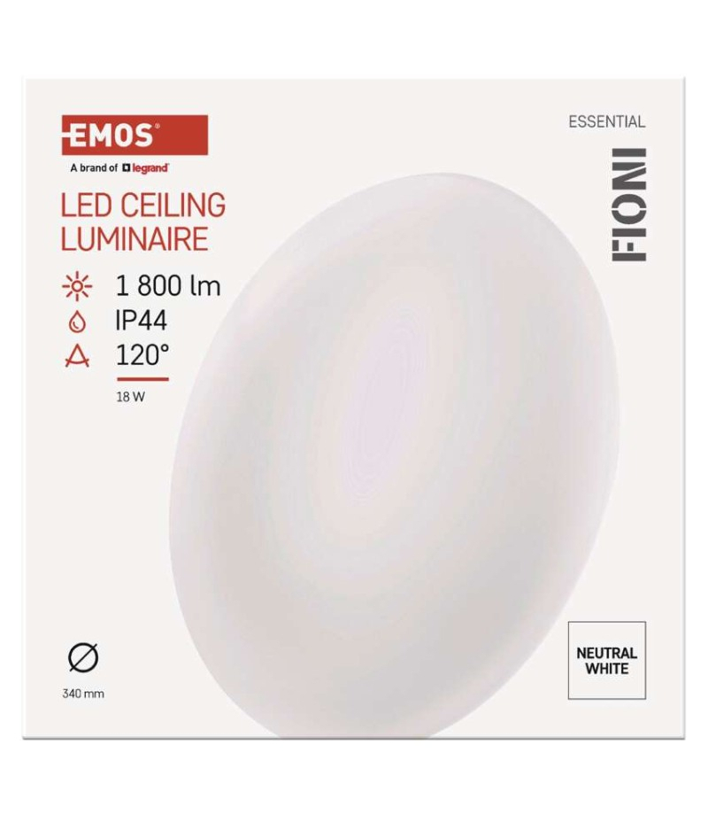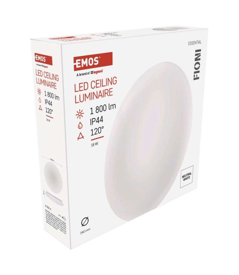 Oprawa LED okrągła Fioni 18W IP44 neutralna biel EMOS ZM1121 Ekonomiczne oświetlenie FIONI Oprawy korytarzowe FIONI z serii ESSENTIAL wyróżniają się stosunkiem wydajności do ceny . Wysokiej jakości, równomiernie emitowane światło o neutralnej temperaturze bieli (4000 K) jest najbardziej zbliżone do naturalnego światła dziennego . Doskonała wydajność świetlna na poziomie 100 lm/W zapewnia oszczędność kosztów w porównaniu z konwencjonalnymi oprawami...