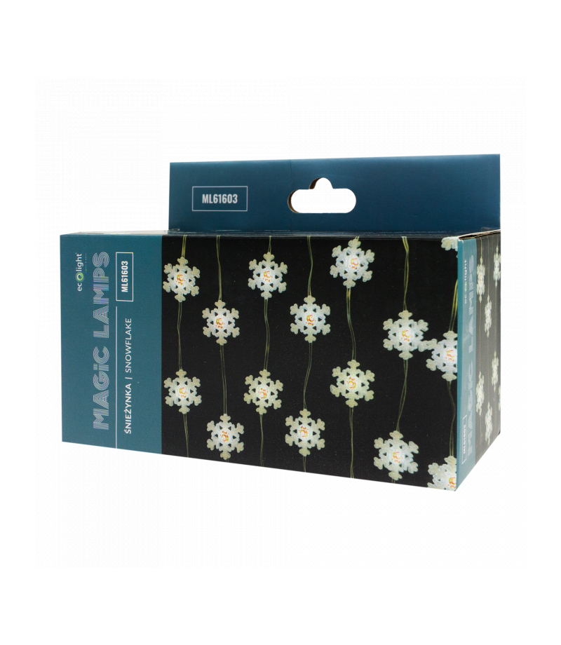 Magiczne lampki 50 led 6500K Śnieżynka 5m DC5V Eco Light ML61603 Magiczne lampki Śnieżynka 50 LED 6500K – 5 m, USB 5V Dodaj zimowy, „śnieżny” blask do świątecznych dekoracji. Girlanda 5 m z 50 diodami LED w chłodnej barwie 6500K i motywem śnieżynki pięknie podkreśli choinkę, okno czy kominek. Zasilanie USB 5V jest bezpieczne i wygodne, a pobór mocy to tylko 2 W. Najważniejsze zalety Motyw śnieżynki – elegancki, zimowy efekt w kilka sekund. Biała zimna 6500K – jasny,...