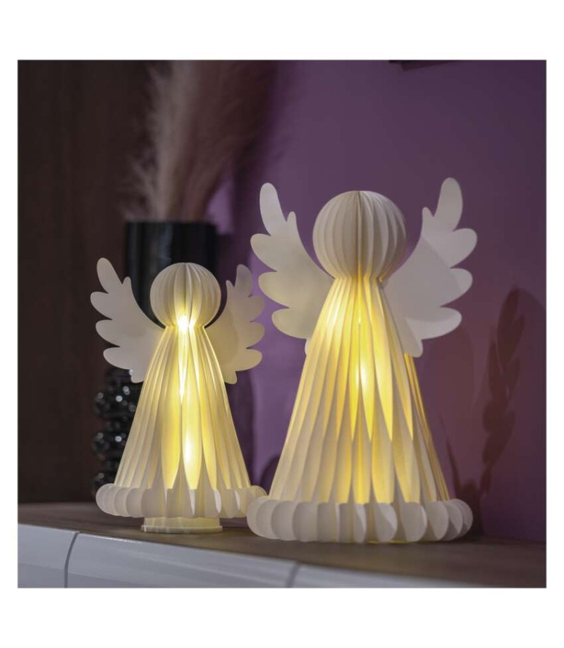 Dekoracje - anioły papierowe 2x 10 LED, 2 szt., 28 i 38 cm, ciepła biel, IP20, timer EMOS DCAW23 Barwa światła: ciepła biel Ilość LED: 2× 10 Materiał: papier Moc: 2× 0,45 W Napięcie wyjściowe: 2× 4,5 V DC Okres gwarancyjny: 2 lata Opakowanie: 1 szt., pudełko Pilot zdalnego sterowania: nie Produkt: anioł Stopień ochrony: IP20 Timer: tak Typ zasilania: baterie 6× AA (brak w zestawie) Wymiary:...