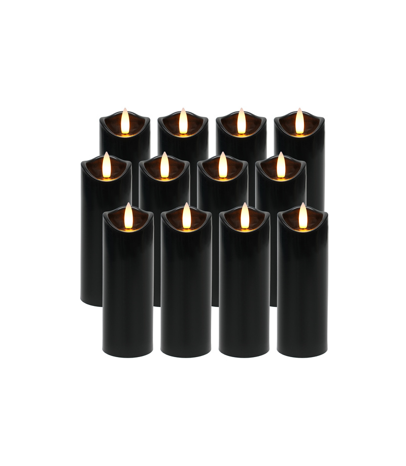 Zestaw 12 czarnych świec LED - więcej światła za jednym razem - ekonomiczne i praktyczne rozwiązanie, które pozwala oświetlić kilka miejsc jednocześnie.