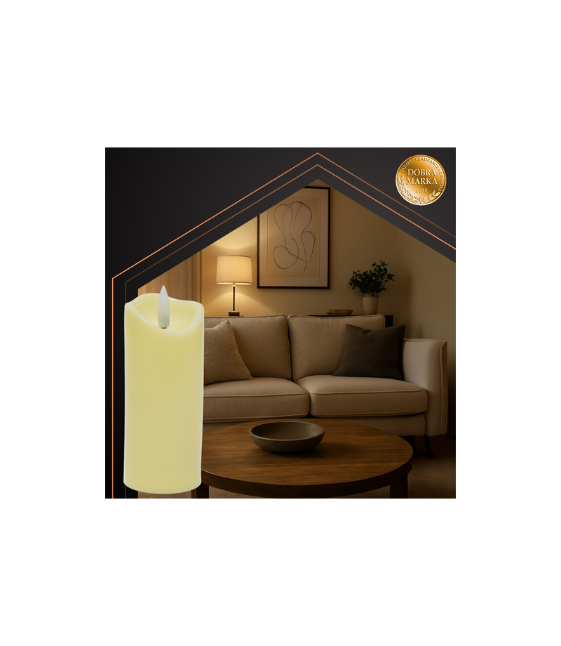 Odporna na warunki atmosferyczne - klasa szczelności IP20 chroni wkład przed wilgocią i kurzem, dzięki czemu świeca działa niezawodnie na zewnątrz i w pomieszczeniach.