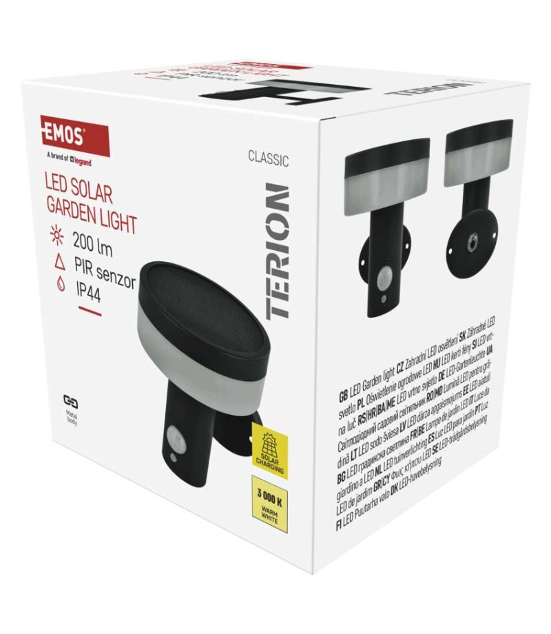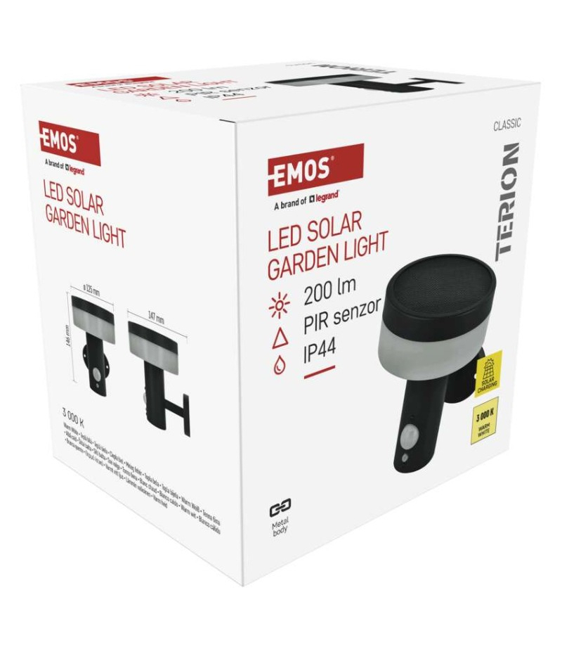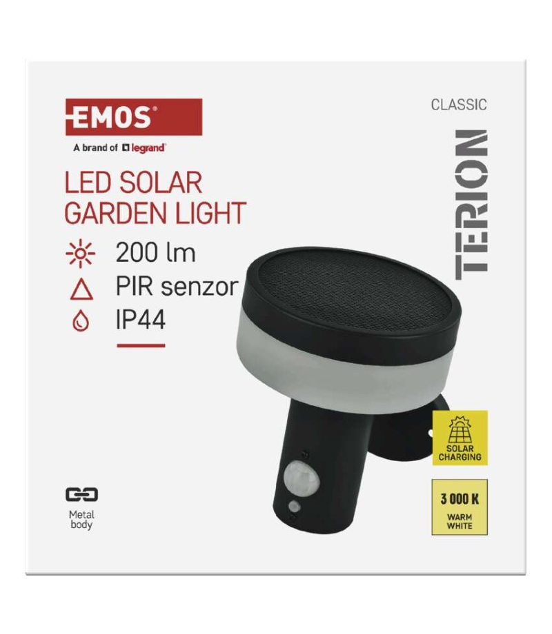 Lampa LED Garden TERION solarna 15 cm, ciepła biel, max 200 lm, IP44, PIR EMOS ZGJ044S Nowoczesny design i energia ze słońca Seria TERION to idealny wybór dla tych, którzy szukają połączenia atrakcyjnego wyglądu i niezawodnej wydajności . Ich nowoczesny design doda wyrazistego charakteru każdej przestrzeni zewnętrznej. W tej serii znajdziesz jedną lampę ścienną i dwa słupki oświetleniowe , wszystkie z wbudowanym czujnikiem PIR . Zapewniają...