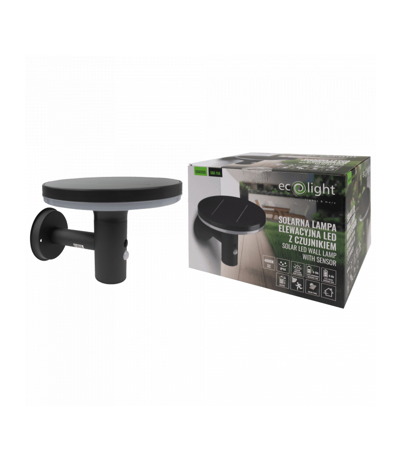 Solarna Oprawa Elewacyjna LED z czujnikiem SOE-11A Eco Light EC61335 Solarna Lampa Elewacyjna LED z Czujnikiem SOE-11A Wprowadź nowoczesne i energooszczędne oświetlenie do swojego otoczenia dzięki Solarnej Lampie Elewacyjnej LED SOE-11A. To zaawansowane urządzenie łączy w sobie funkcjonalność, trwałość oraz estetyczny design, idealnie komponując się z elewacjami domów, ogrodami czy tarasami. Specyfikacja techniczna: Moc: 10W Czas pracy: 6-8 h Czas ładowania: 8-10h Strumień...