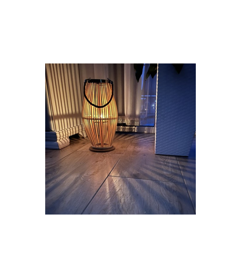 DUŻY LAMPION BAMBUSOWY NA TARAS ELEGANCJA W NAJLEPSZYM WYDANIU - stylowy i solidnie wykonany lampion bambusowy to doskonałe połączenie naturalnych materiałów z nowoczesnym designem , który wpisuje się w najnowsze trendy wnętrzarskie. Jego pręty zostały wykonane z wysokiej jakości bambusa , co nadaje mu wyjątkowej lekkości, a jednocześnie trwałości . Bambusowe elementy są starannie przytwierdzone, tworząc harmonijną, a zarazem unikatową strukturę, która przyciąga wzrok i dodaje...