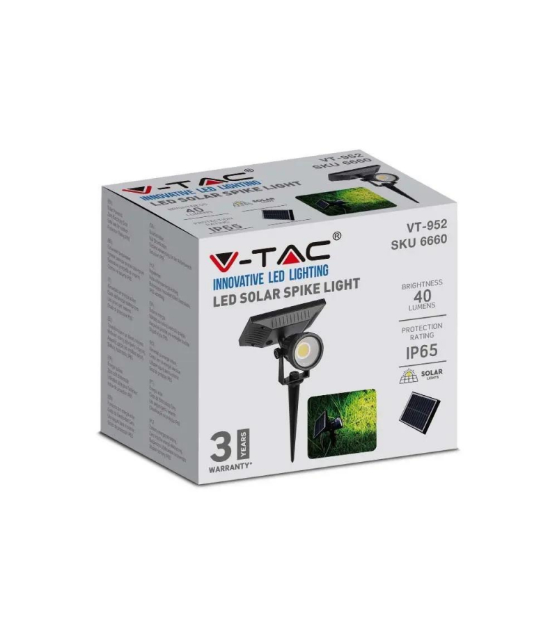 2W Oprawa ogrodowa solarna / Barwa:4000K / IP65 / Obudowa: Czarny , Cechy produktu Moc 2W Strumień świetlny 40 lm Barwa światła 4000K IP IP65 Kod kreskowy EAN 3800157664547 Opakowanie zbiorcze 20