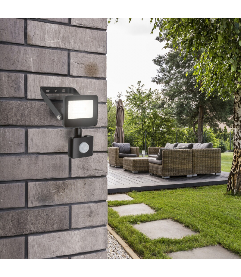 Wyposażona w czujnik ruchu. lampa zewnętrzna Flood. o rozproszonej wiązce światła doskonale nadaje się do oświetlenia ogrodu wokół domu. Czarna metalowa oprawa wyposażona jest w przezroczysty plastikowy klosz. Reflektor wyposażony jest w źródło światła LED o mocy 10W. strumieniu świetlnym 900 lumenów oraz temperaturze barwowej 4000K. Żywotność żarówki. emitującej naturalne białe światło. wynosi 20 000 godzin. Konstrukcja lampy Flood pozwala w łatwy sposób ustawić ją tak. aby oświetlała wyznaczone miejsca. dzięki czemu można oświetlić określoną przestrzeń. rośliny lub upiększyć różne części budynku i ogrodu. Lampa generuje światło o szerokim kącie. wynoszącym 110°. daje to efekt rozproszenia. Wymiary obudowy lampy to 103mm szerokości i 159mm wysokości. Czujnik ruchu skutecznie wykrywa ruch w odległości 4-10 metrów. pod kątem 120°. Lampa Flood posiada stopień ochrony IP44. który gwarantuje. że jest zabezpieczona przed przedostaniem się cząstek do 1mm. kurzem oraz zachlapaniem wodą. Na lampę udzielamy 5 letniej gwarancji.