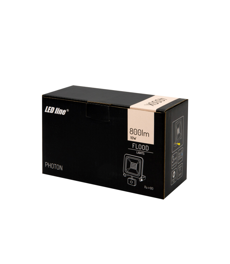 Naświetlacz przemysłowy LED line® ma moc 10 W i temperaturę barwową 4000 K. W produkcie zastosowano diodę typu SMD2835. Produkt ten osiąga skuteczność świetlną 80 lm/W. Strumień świetlny generowany przez produkt wynosi 800 lm. Kąt świecenia diody wynosi 120 °.