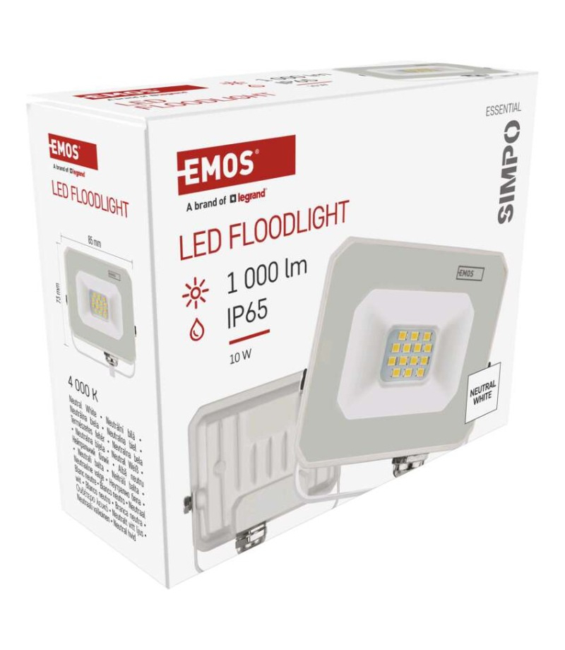 Naświetlacz LED SIMPO 10 W, biały, neutralna biel EMOS ZS2213W Oświetlenie zewnętrzne dla niewymagających Naświetlacze LED SIMPO o wyjątkowo smukłej konstrukcji to idealny wybór dla osób poszukujących prostego i skutecznego oświetlenia obszarów zewnętrznych, takich jak podjazdy, garaże czy ogrody. Dzięki wysokiej wydajności świetlnej, SIMPO są idealnym zamiennikiem reflektorów halogenowych, oszczędzając do 90% kosztów energii....