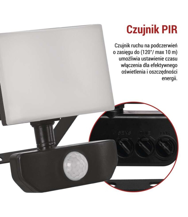 Naświetlacz LED TAMBO z czujnikiem PIR, 10 W, 1000 lm, czarny EMOS ZS2912 Akumulator: nie dotyczy Barwa światła: neutralna biel Czas świecenia: nie dotyczy Częstotliwość: 50/60 Hz Czujnik PIR: tak Długość przewodu wejściowego: 30 cm Flicker-free: tak Indeks oddawania barw...