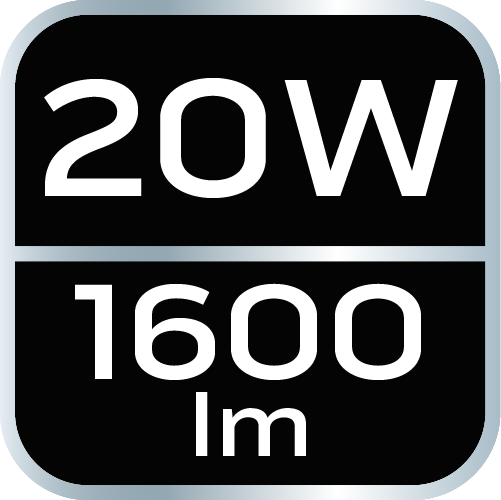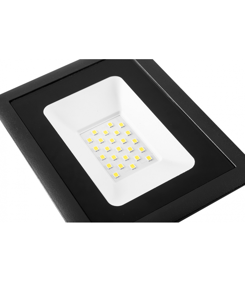 Reflektor NEO moc 20W, 1600 lumenów, 230V 50Hz, SMD LED, czas pracy 30 000h, 6500K, aluminiowy korpus, IP65, CRI Ra ≥ 70, kąt świecenia 100 stopni, ON/OFF ≥ 15 000 cykli, przewód 15 cm, temperatura pracy -40 <> +50, współczynnik mocy > 0.8, czas rozpalania do 60% < 0.5 s, rozmiar 134 x 132 x 23 mm, uchwyt obrotowy do powieszenia