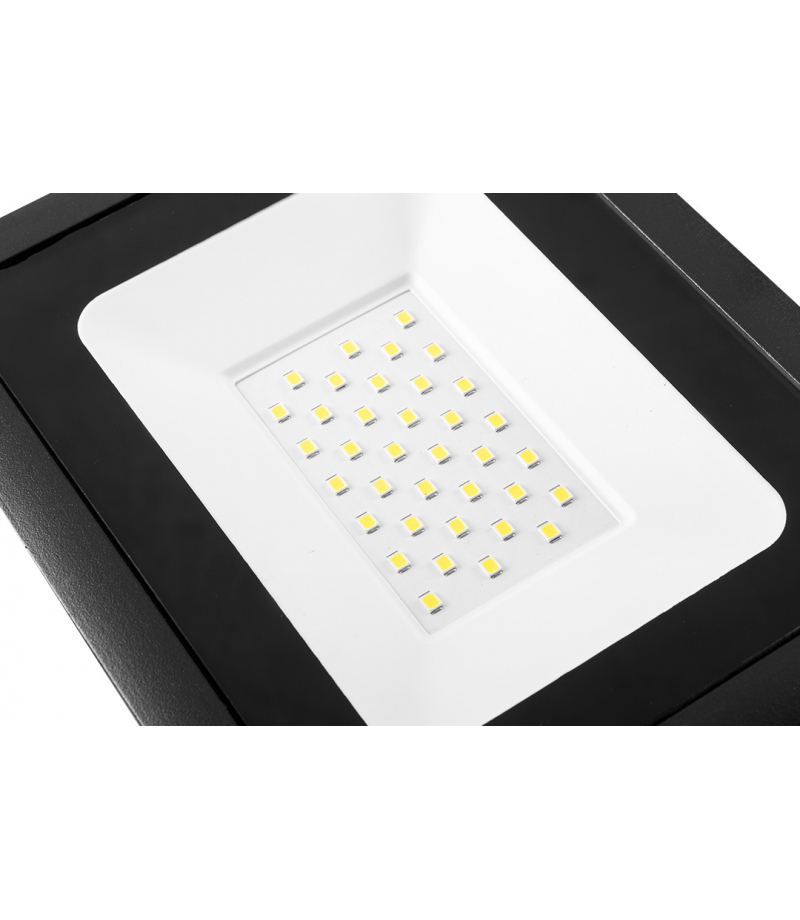 Reflektor NEO moc 50W, 4250 lumenów, 230V 50Hz, SMD LED, czas pracy 36 000h, 6500K, aluminiowy korpus, IP65, CRI Ra ≥ 80, kąt świecenia 120 stopni, ON/OFF ≥ 18 000 cykli, przewód 15 cm, temperatura pracy -40 <> +50, współczynnik mocy > 0.9, czas rozpalania do 60% < 0.5 s, rozmiar 205 x 180 x 25 mm, uchwyt obrotowy do powieszenia