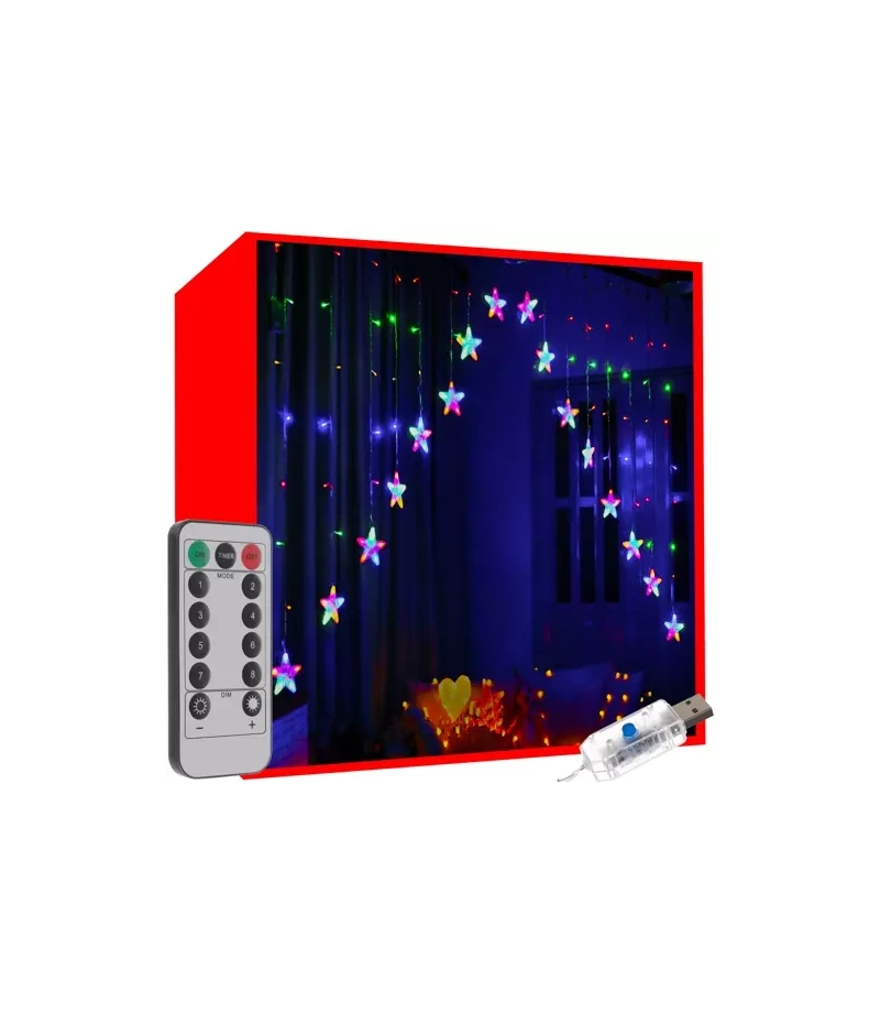 KURTYNA ŚWIETLNA SOPLE GWIAZDKI 136 LED NA PILOTA / KOLOR ŚWIECENIA: MULTICOLOR LAMPKI GWIAZDKI LEDOWE – to wyjątkowe oświetlenie kurtynowe posiada aż 8 różnych trybów świecenia, co tworzy wyjątkową i niepowtarzalną dekorację każdego wnętrza, a nawet ogrodu. Posiadają różne sekwencje, które można przełączać za pomocą dołączonego do zestawu sterownika . Lampki zasilane są za pomocą prądu z sieci energetycznej, dzięki czemu nie musisz martwić się o ciągłą wymianę baterii. PILOT + TIMER...