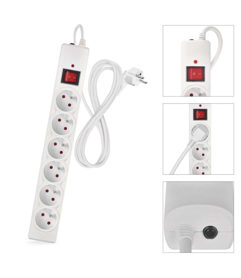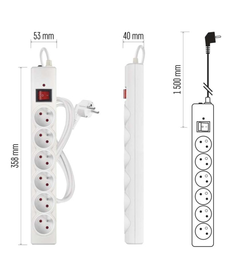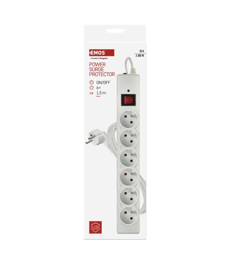 Listwa przeciwprzepięciowa EMOS, 6 gniazd, 1,5m, bezpiecznik 10A, Gwarancja 2000€, biała EMOS P54015 Absorpcja energii: 380 J L-N Bezpiecznik: bezpiecznik 10 A / 250 V~ Czas reakcji: 1 ns Długość: 1,5 m Filtr EMI/RFI: nie Gwarancja: 2 000 € Ilość gniazd: 6× 2P + PE Kolor:...