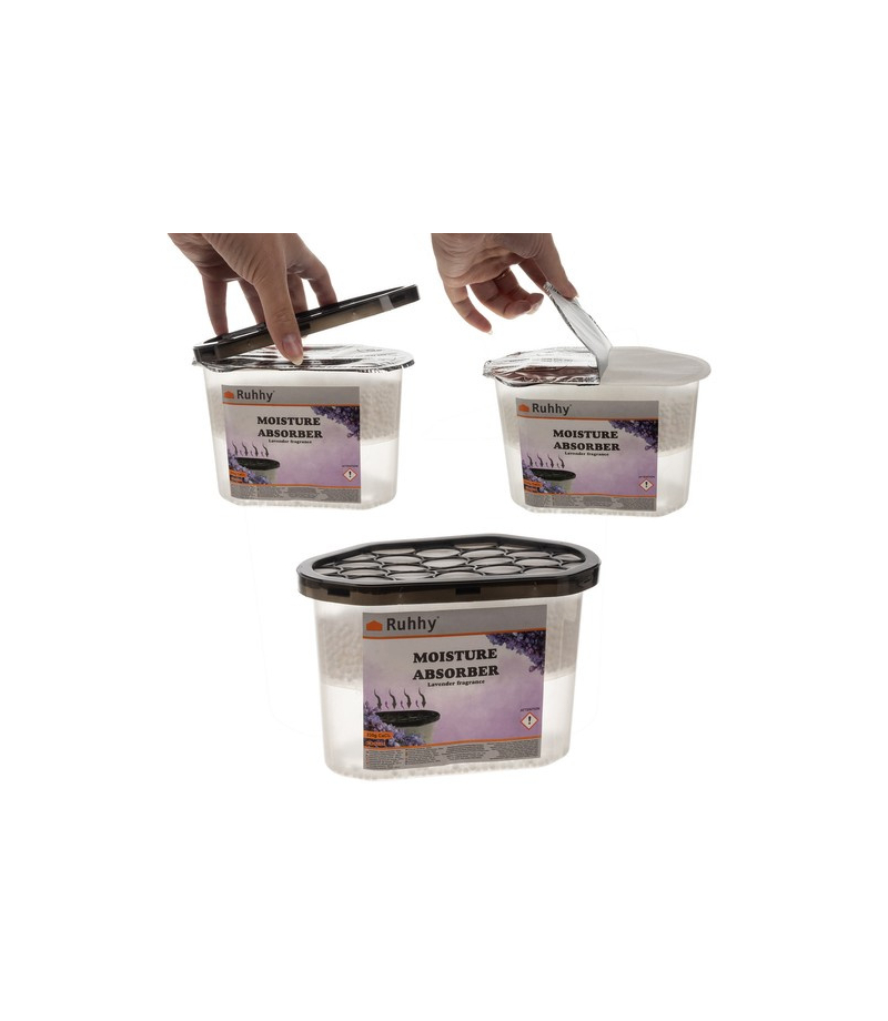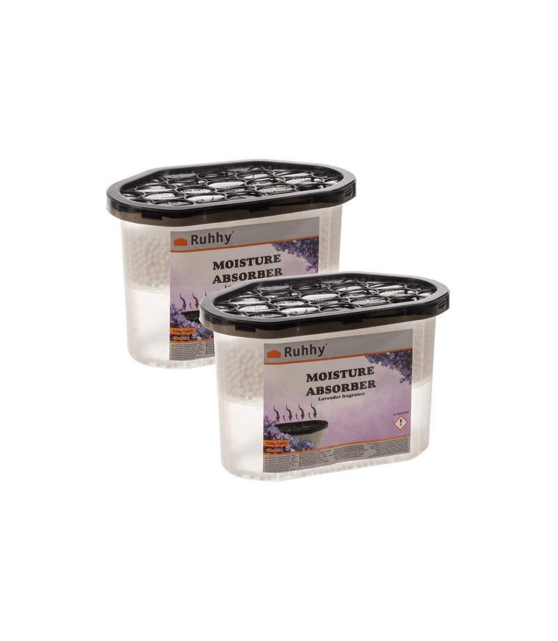 2 x LAWENDOWY POCHŁANIACZ WILGOCI 500 ml ZAPOBIEGA POWSTAWANIU PLEŚCNI, GRZYBÓW I KOROZJI - pochłaniacz skutecznie osuszy powietrze w mieszkaniu, domu, garażu, magazynie itd. Idealny do łazienki lub kuchni. Zmniejsza wilgotność powietrza i zapobiega rozwojowi pleśni, grzybów, stęchlizny, korozji oraz zaparowaniu szyb. ZAPAROWANE SZYBY I LUSTRA TO NIE TWÓJ PROBLEM - wilgoć w łazience czy kuchni powoduje parowanie szyb. Pochłaniacz Ruhhy eliminuje to zjawisko. Od teraz zaparowane...
