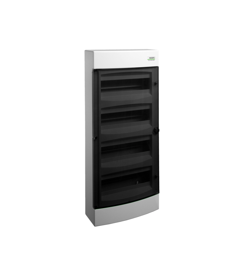 Profesjonalna rozdzielnica natynkowa przeznaczona do zastosowań w instalacjach elektrycznych, zapewniająca bezpieczną i estetyczną dystrybucję energii. Konstrukcja: Natynkowa, solidna obudowa zapewniająca łatwy montaż i dostępność. Drzwiczki: Przezroczyste drzwiczki umożliwiające wizualną kontrolę stanu aparatury modułowej bez konieczności otwierania rozdzielnicy. Pojemność: Cztery rzędy po 12 modułów każdy (4x12), łącznie 48 modułów, zapewniających dużą elastyczność...