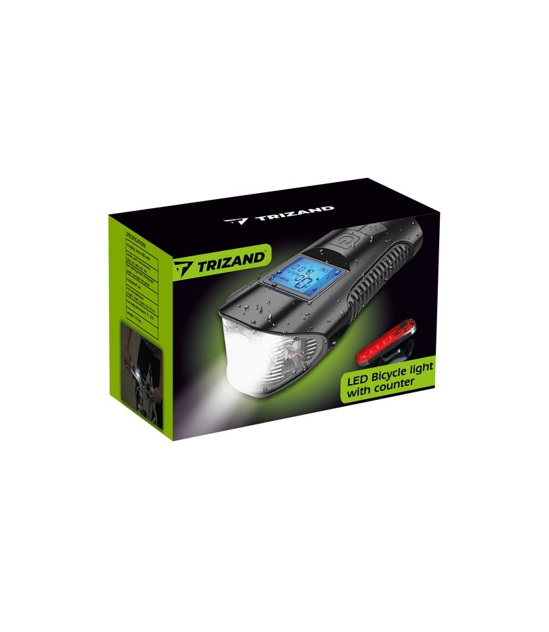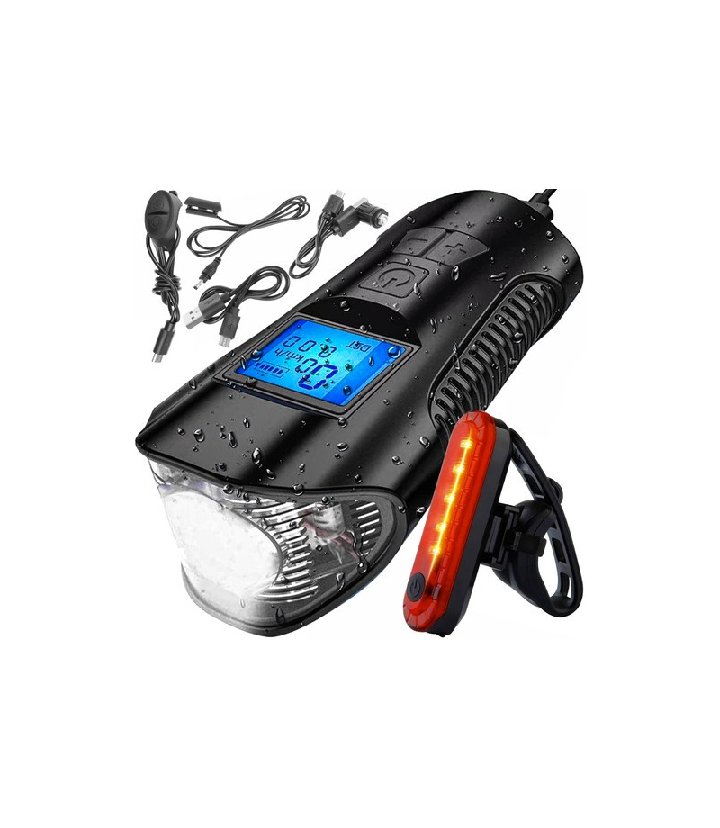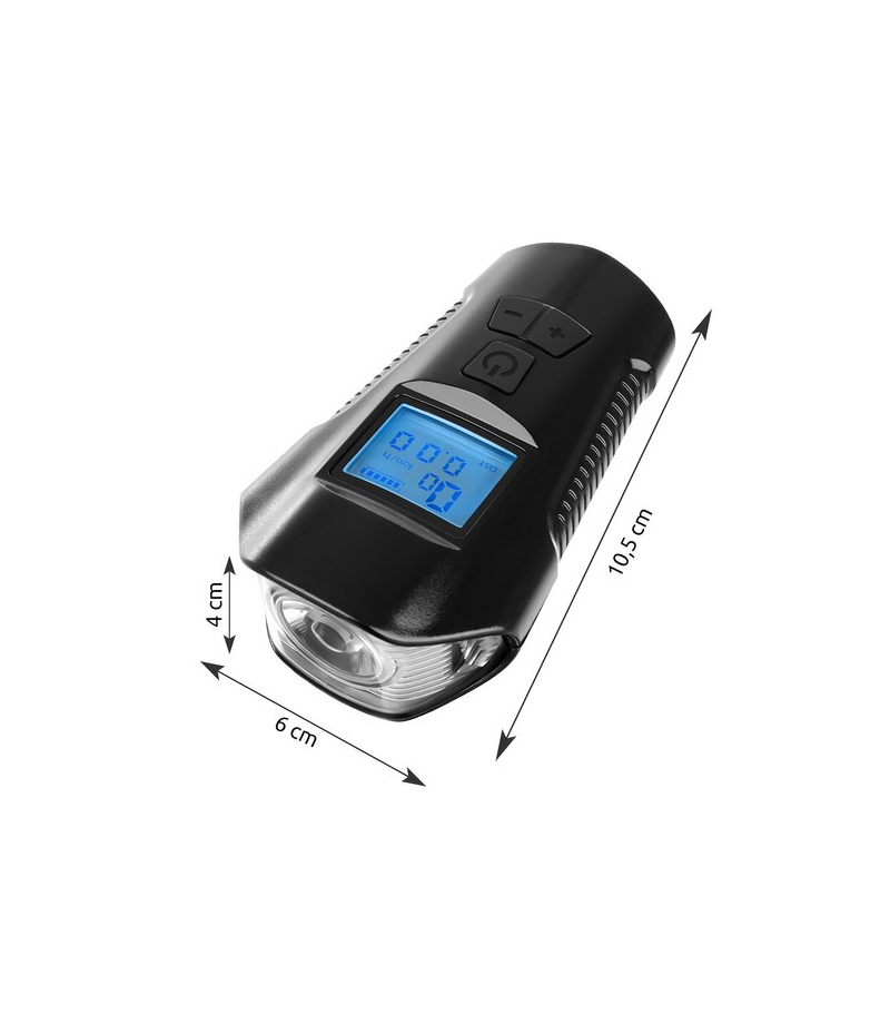 WODOODPORNA LAMPKA ROWEROWA LED PRZÓD + TYŁ Z LICZNIKIEM I KLAKSONEM DOSKONAŁA WIDOCZNOŚĆ I NIE TYLKO – lampka rowerowa przód-tył zapewni rowerzyście bardzo dobre oświetlenie drogi z przodu oraz widoczność z tyłu . Urządzenie posiada jednak również inne funkcje, w tym sygnalizator dźwiękowy oraz nadajnik prędkościomierza, który montowany jest na szprychach. AŻ 5 TRYBÓW POMIARU NA WYŚWIETLACZU LICZNIKA – dzięki nadajnikowi prędkościomierza możliwe jest sprawdzenie całego...