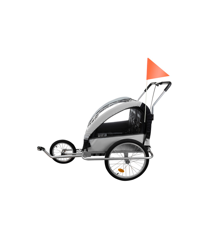 3w1 – do roweru, biegania i spacerów - przyczepka 3w1 dwuosobowa pełni funkcję wózka transportowego, joggera oraz przyczepki rowerowej, co czyni ją uniwersalnym rozwiązaniem dla rodzin prowadzących aktywny tryb życia