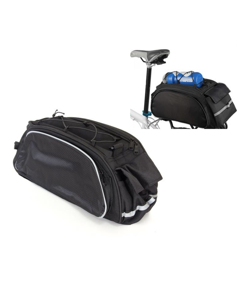 Pojemna 4-komorowa torba 2w1, rowerowa na bagażnik, bardzo przydatna podczas dłuższych wypraw rowerowych.