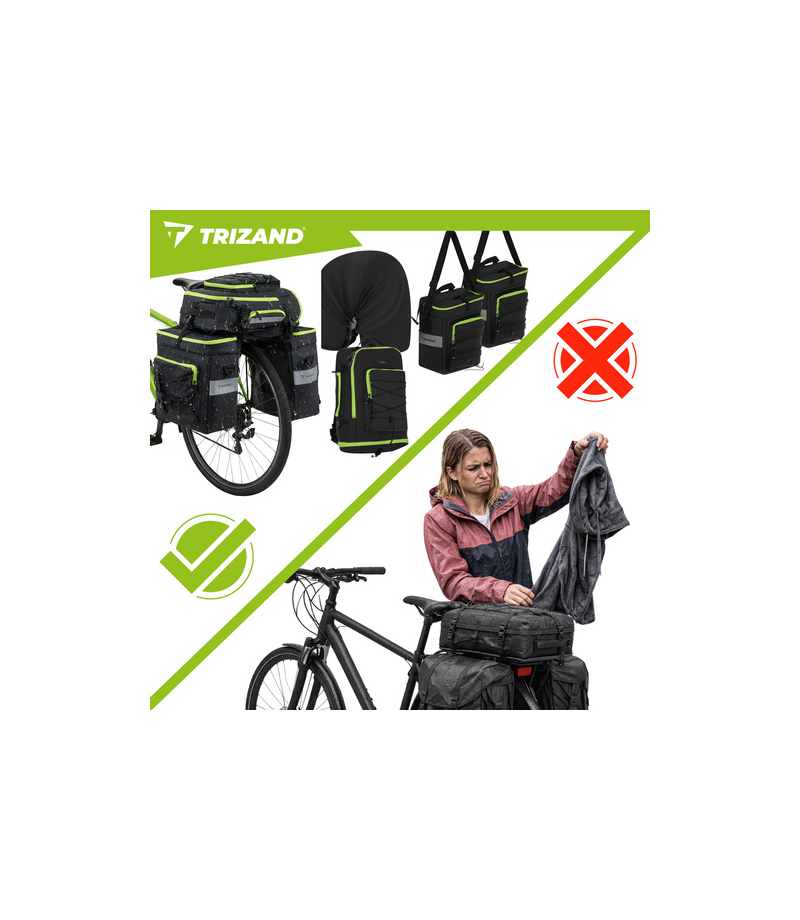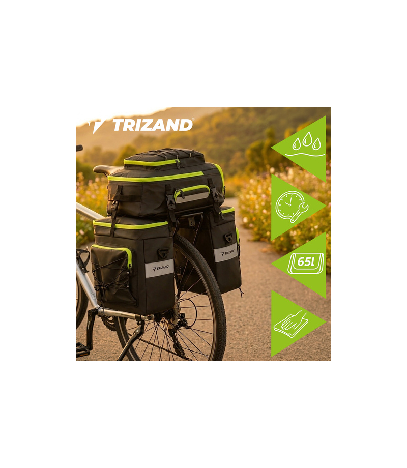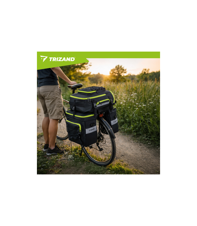 Planujesz dłuższą trasę rowerową, dojazdy do pracy lub wyprawy bikepackingowe? Sakwa rowerowa TRIZAND 65L tofunkcjonalne rozwiązanie 3w1, które zapewnia wygodny transport bagażu bez obciążania pleców. Łączy w sobie torbę, plecak i sakwy boczne, dzięki czemu zyskujesz maksymalną elastyczność i komfort w każdej podróży. To produkt polskiej marki i polskiego producenta, co gwarantuje dopracowaną jakość, bezpieczeństwo użytkowania, solidne wykonanie oraz wsparcie sprawdzonego producenta.