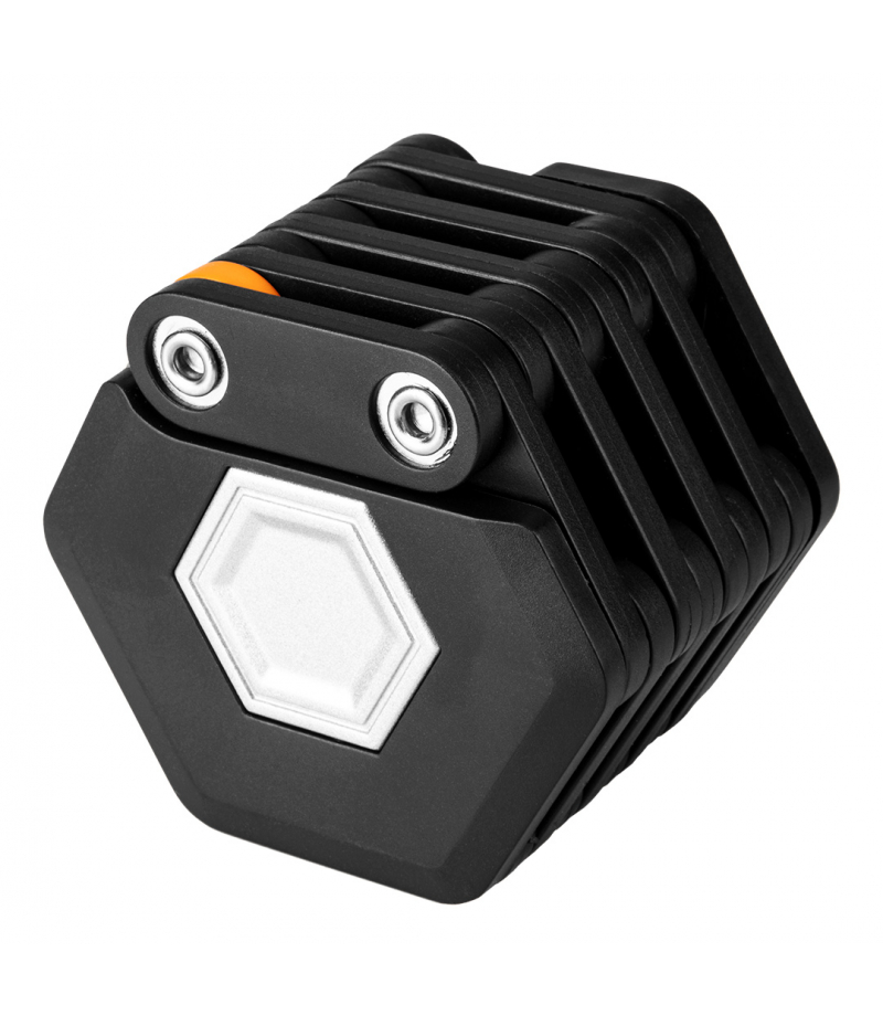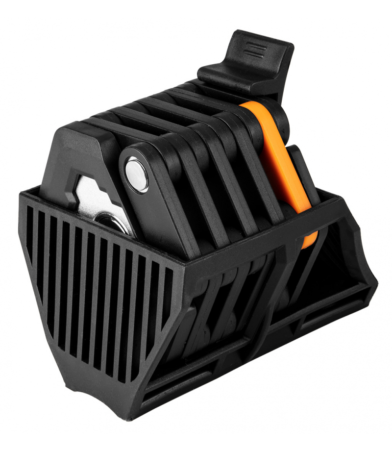 Zapięcie rowerowe, składane na klucz 91-006 marki NEO o długości całkowitej 78 cm i wadze 615 g. Wykonane zostało ze stopu cynku i ABS. Montaż zapięcia z uchwytem odbywa się za pomocą zaczepu z blokadą. Uchwyt zapięcia przeznaczony jest do mocowania na ramie roweru. Zabezpieczenie składa się z trudnych do złamania i przecięcia płaskowników. Zapięcie skutecznie chroni pojazd przed kradzieżą. W zestawie oferowany jest z trzema kluczami. Polecany dla kurierów jedzenia oraz właścicieli hulajnóg, rowerów, skuterów i wózków dziecięcych. Marka NEO oferuje wysokiej jakości produkty dla miłośników jednośladów.