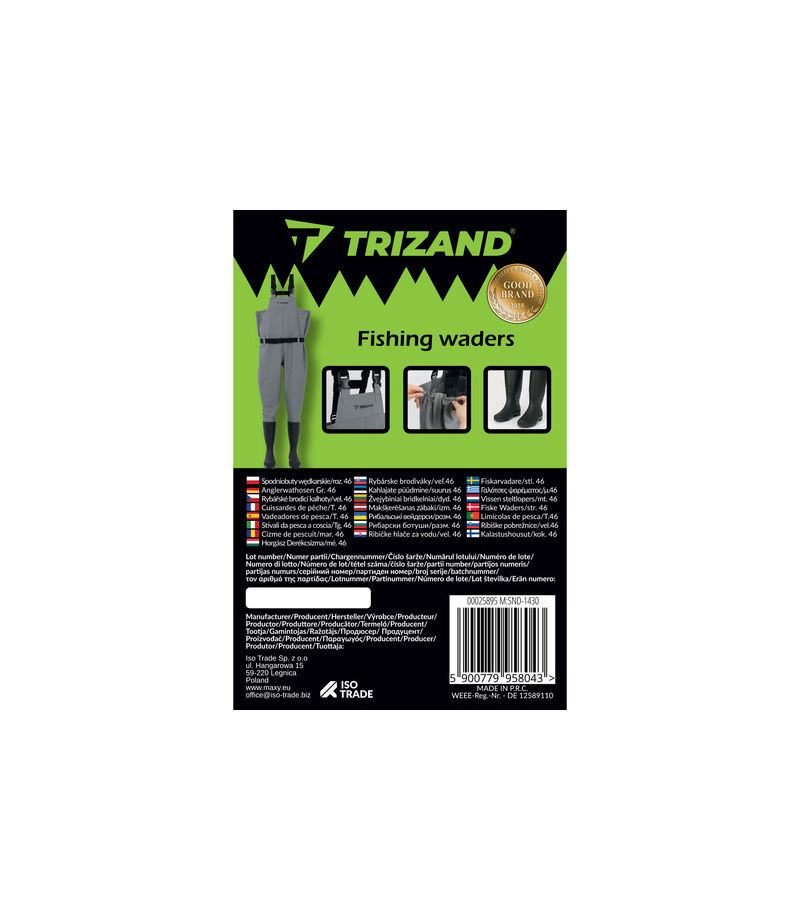 Wodery wędkarskie spodniobuty na ryby TRIZAND gumowe spodnie grube i długie + regulowane szelki rozmiar 46! - nie przeciekają - wodery wędkarskie wykonane są z solidnego materiału PVC, zgrzewanego techniką wysokiej częstotliwości, dzięki temu są całkowicie szczelne – nie przeciekają nawet przy dłuższym brodzeniu w wodzie - chronią przed zimnem i gorącem - materiał jest odporny zarówno na wychłodzenie w...