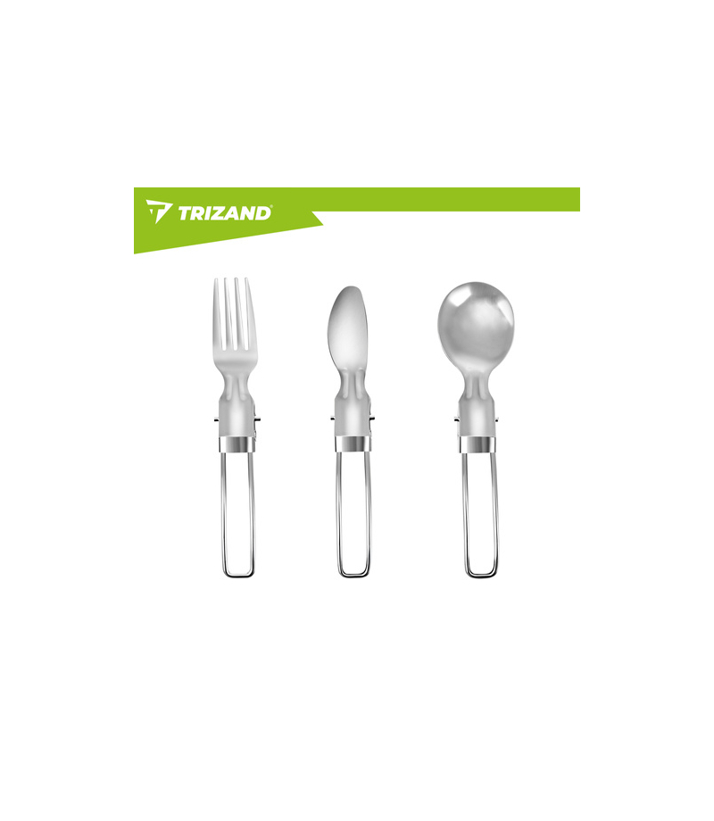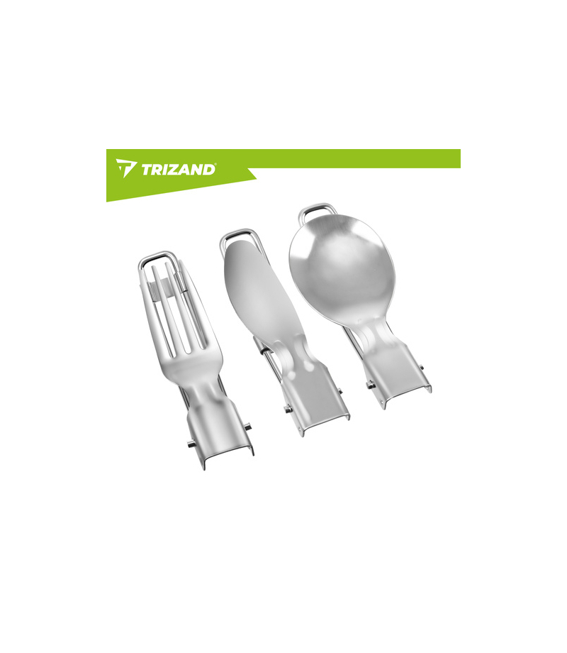 - składane sztućce ze stali nierdzewnej z zabezpieczeniami - trwałe i wygodne rozwiązanie do jedzenia w terenie bez konieczności zabierania dodatkowych akcesoriów oraz bez ryzyka samoczynnego złożenia podczas użytkowania