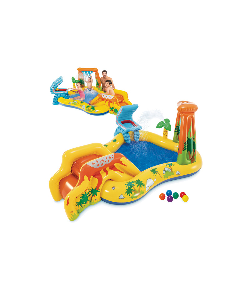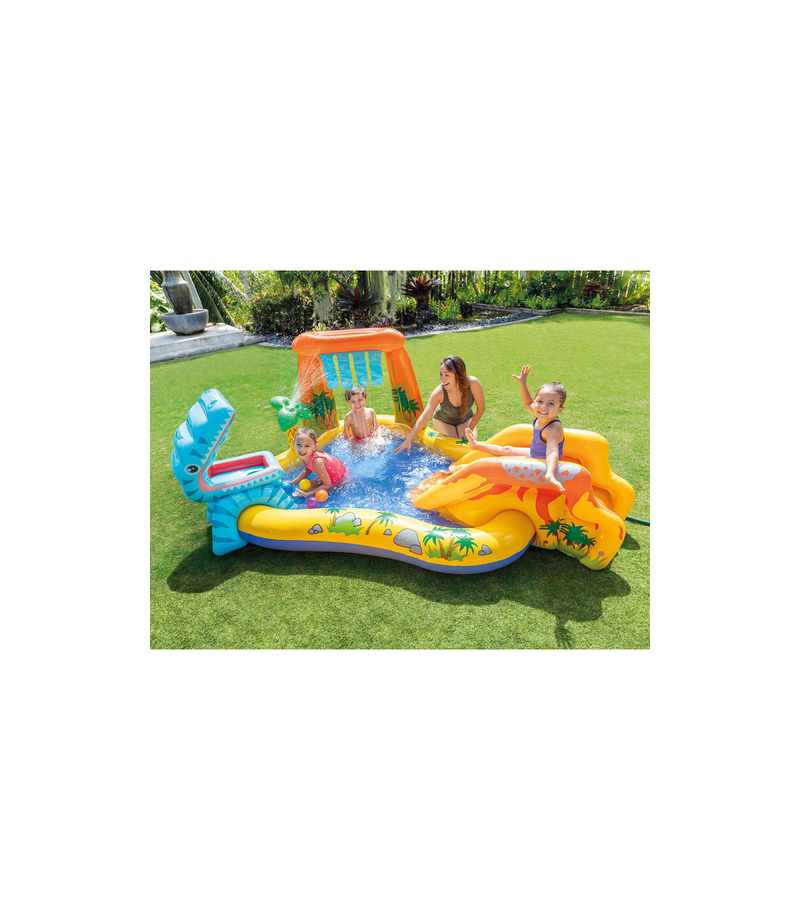 Wodny plac zabaw, basen ogrodowy dla dzieci, 5w1: basen, zjeżdżalnia, fontanna, kurtyna wodna i wodna koszykówka, INTEX 57444 - własny mini aquapark - wielofunkcyjny zestaw wodnej zabawy łączy basen, zjeżdżalnię, fontannę, kurtynę wodną i wodną koszykówkę, wszystko w jednym produkcie na lato - t rwałość i odporność na uszkodzenia - dzięki wytrzymałemu materiałowi i solidnej konstrukcji, ten wodny plac zabaw Intex jest odporny na rozdarcia i uszkodzenia, nawet przy intensywnym...