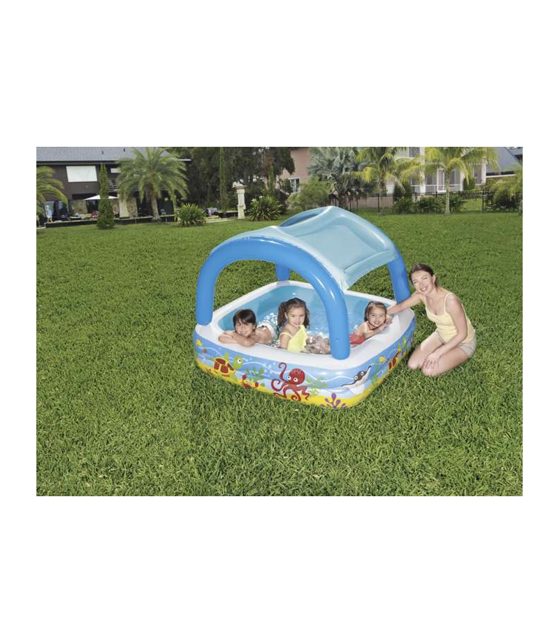 Basen Basenik Dmuchany z Daszkiem dla Dzieci 52192 WYTRZYMAŁY MATERIAŁ – dmuchany basen wykonany został z niezwykle wytrzymałego winylu, dzięki czemu gwarantuje beztroską, wielogodzinną zabawę w domu czy ogrodzie. Ponadto posiada 2 zawory bezpieczeństwa – sprawia to, że powietrze nie wydostanie się po jego napompowaniu. 2 PIERŚCIENIE - basen składa się z dwóch oddzielnych komór na powietrze, które mają kształt pierścieni. Dzięki dodatkowo zabezpieczone przed wydostawaniem się...