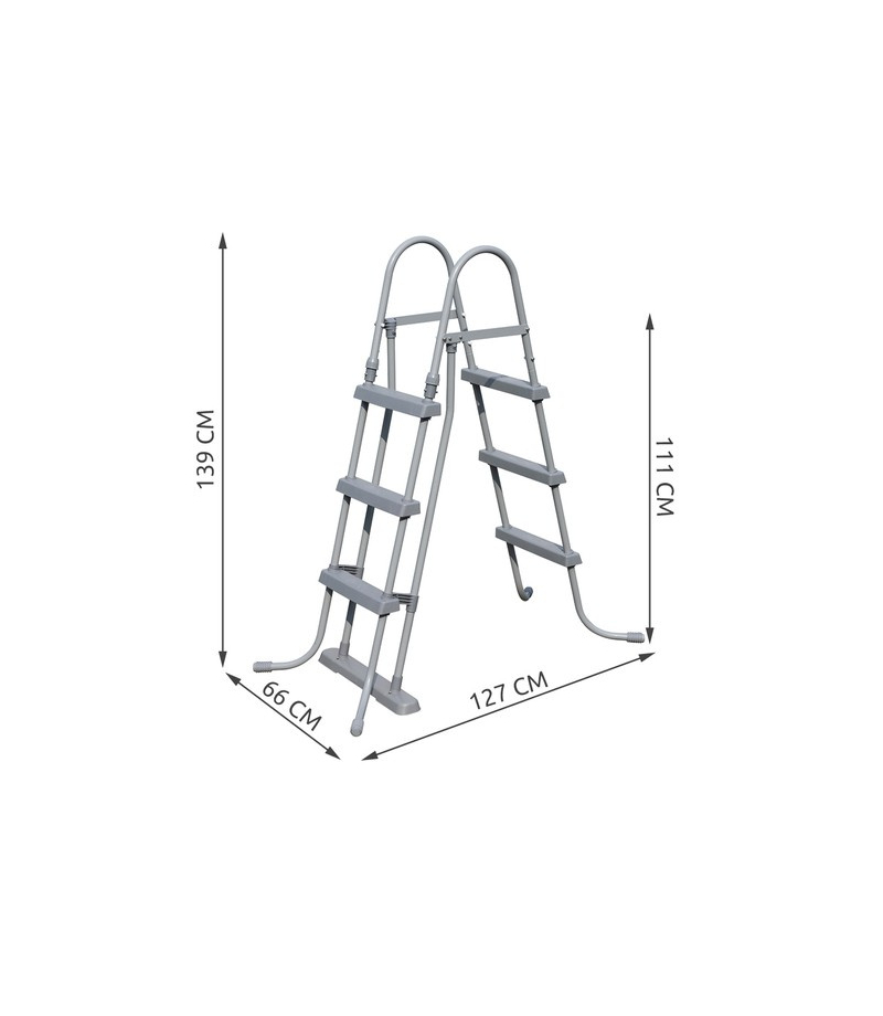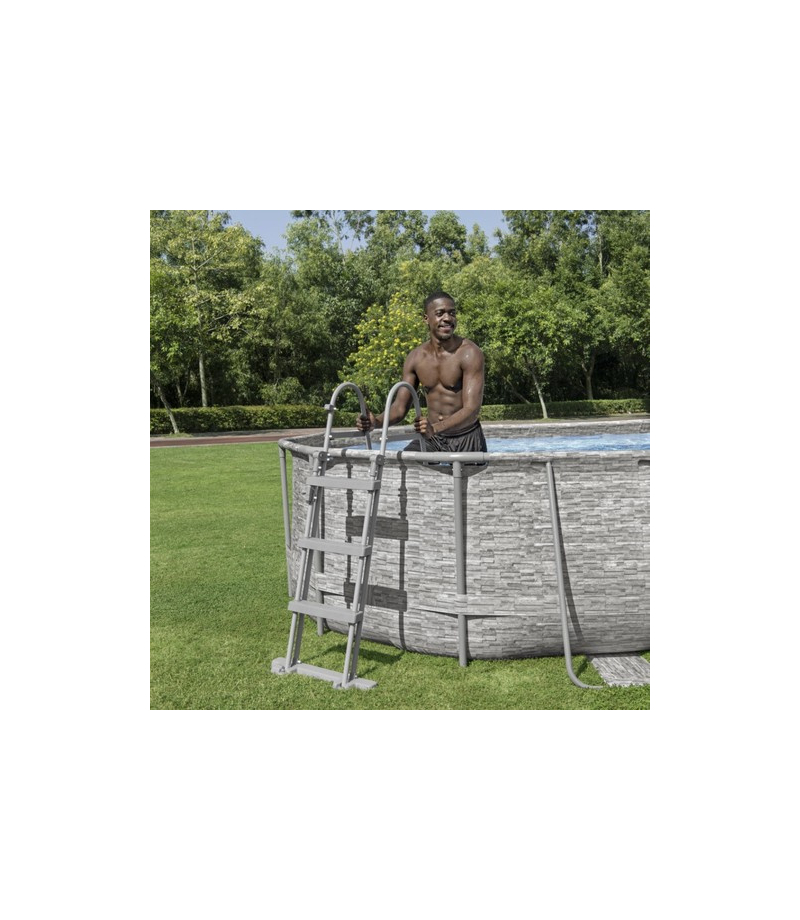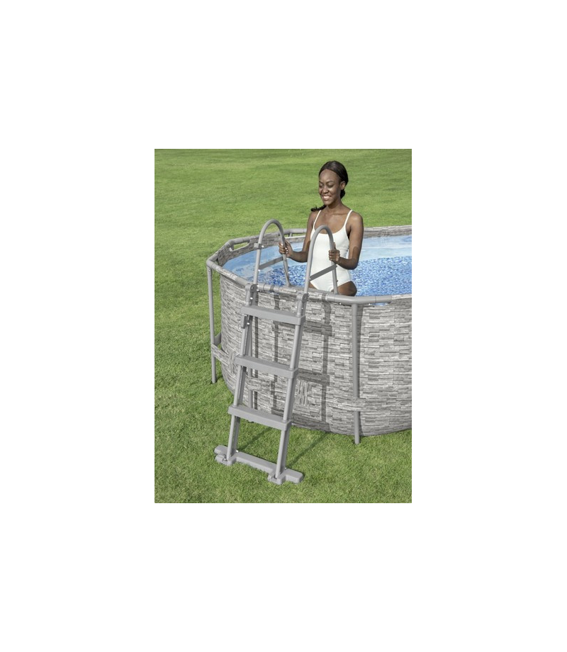 Duże baseny przenośne to także więcej radości oraz przyjemności z ich korzystania. W takim przypadku pojawia się jednak konieczność przygotowania możliwości bezpiecznego wejścia oraz opuszczenia basenu. W takiej sytuacji niezbędne jest użycie drabinki. Drabina do basenu wykonana jest z nierdzewnych materiałów, co sprawia, że z powodzeniem może być poddawana długiemu działaniu wody bez ryzyka wystąpienia korozji. Stabilność konstrukcji zapewnia sześć punktów podparcia. Za bezpieczeństwo konstrukcji odpowiadają cztery szeroko rozstawione zakończenia obu stron zejścia/wejścia oraz szeroka belka wspierająca na zewnątrz, przymocowana do dodatkowych drążków stabilizujących.