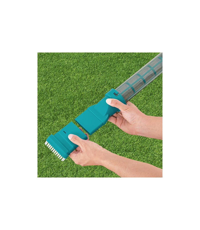 radzi sobie z większym basenem - odkurzacz basenowy jest kompatybilny z basenami naziemnymi o średnicy do 6,10 m, co oznacza, że bez problemu sprawdzi się w większości basenów stelażowych, rozporowych i dmuchanych, to rozwiązanie, które czyści skutecznie i bez wysiłku