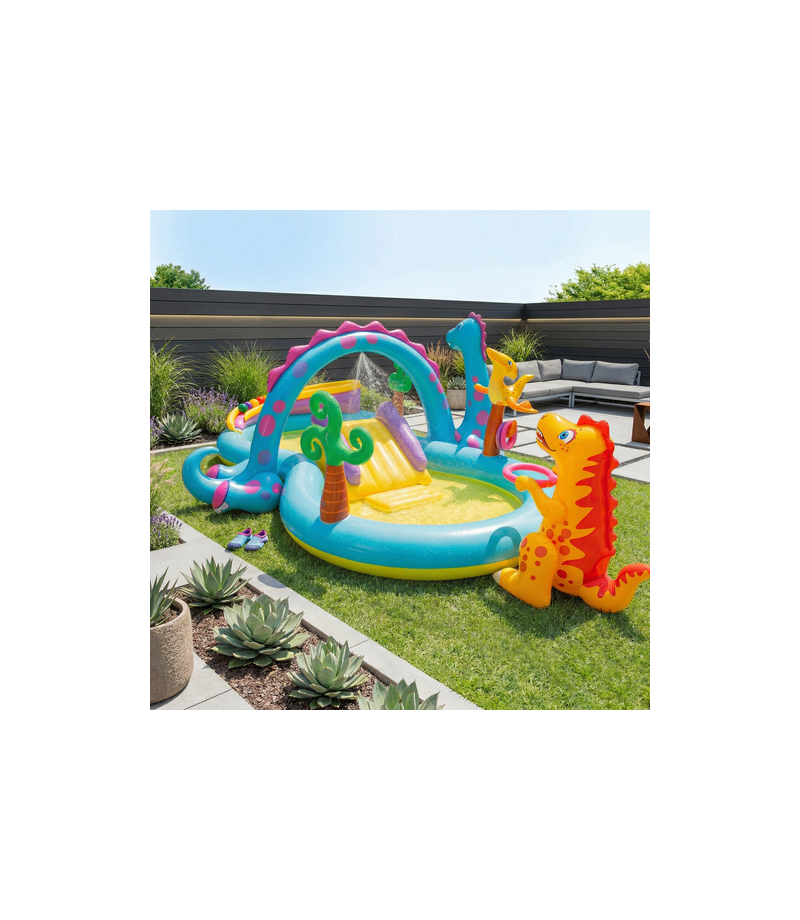 Szukasz pomysłu na bezpieczną, aktywną zabawę w upalne dni, bez ciągłych wyjść na basen Wodny plac zabaw Intex Dinoland 57135NP zamienia ogród w mały park wodny - z ochłodą, ruchem i atrakcjami, które dzieci naprawdę wciągają.
