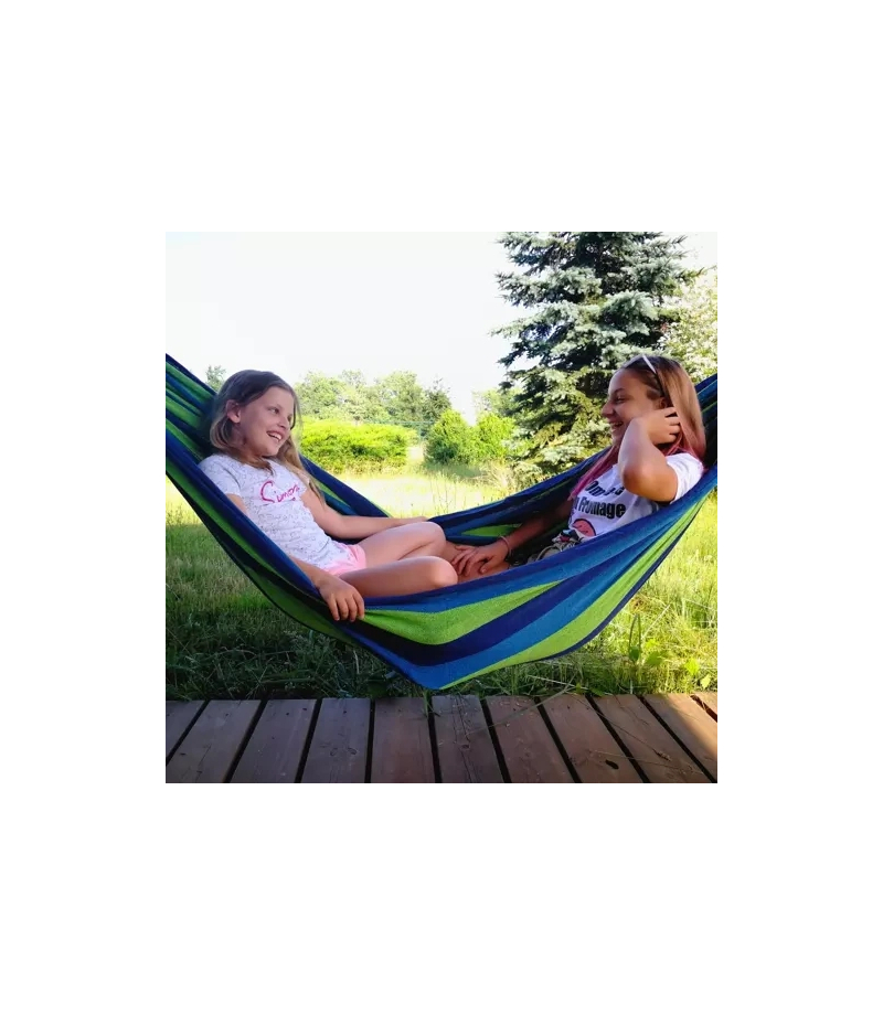 HAMAK OGRODOWY DWUOSOBOWY XXL NATURALNY MATERIAŁ – hamak wykonany jest z bawełny z niewielką domieszką poliestru, dzięki czemu jest przyjemny w dotyku i wytrzymały. Dodatkowo zapewnia także prawidłową wentylację , co daje Ci duży komfort podczas korzystania w upalne dni. PRZENOŚNY + POKROWIEC – możliwość szybkiego demontażu powoduje, że hamak można łatwo spakować i zabrać ze sobą w podróż . Świetnie sprawdzi się na wycieczkach w plenerze, kempingach, czy też po prostu w ogrodzie....