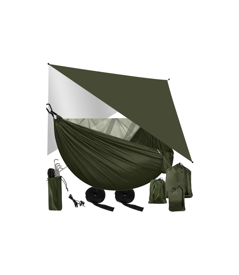 Hamak turystyczny z moskitierą i trapem, survivalowy na biwak i bushcraft, dwuosobowy, bardzo wytrzymały max. 250kg! wytrzymały aż do 250 kg - wykonany z wysokiej jakości materiałów hamak jest, odporny na przetarcia i bardzo duże obciążenie, bez problemu pomieści dwóch dorosłych mężczyzn o dużej posturze łatwy w montażu - w zestawie znajdują się dwa mocne karabińczyki, wytrzymałe taśmy, śledzie i linki, dzięki którym zamontujesz hamak z trapem w 6 minut, bez potrzeby...
