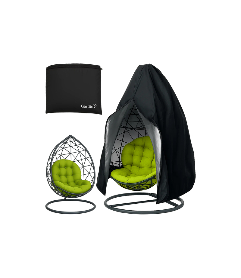 Pokrowiec na kokon, wiszący kosz, fotel ogrodowy, huśtawkę wodoodporny UV w etui GARDLOV! - będzie pasował do Twojego fotela - uniwersalny rozmiar pokrowca 168 × 115 cm pasuje do większości standardowych modeli huśtawek typu kokon i foteli wiszących – bez ryzyka niedopasowania, dzięki ściągaczowi ze sznurkiem idealnie dopasujesz go do kształtu mebla - proste zakładanie - pokrowiec zakłada się w 10...