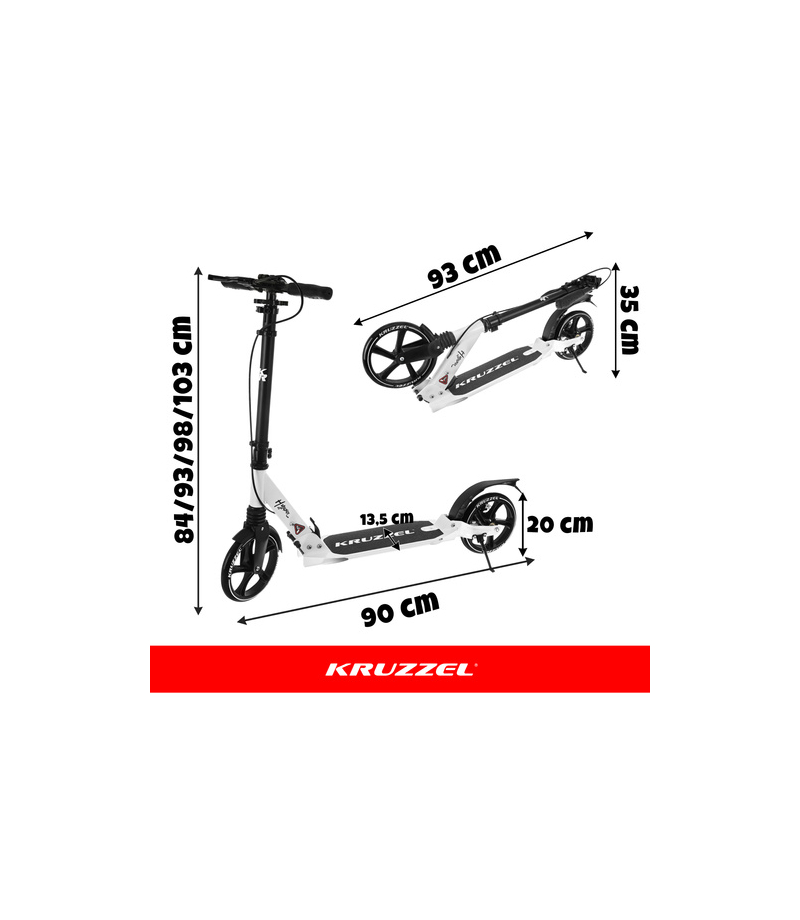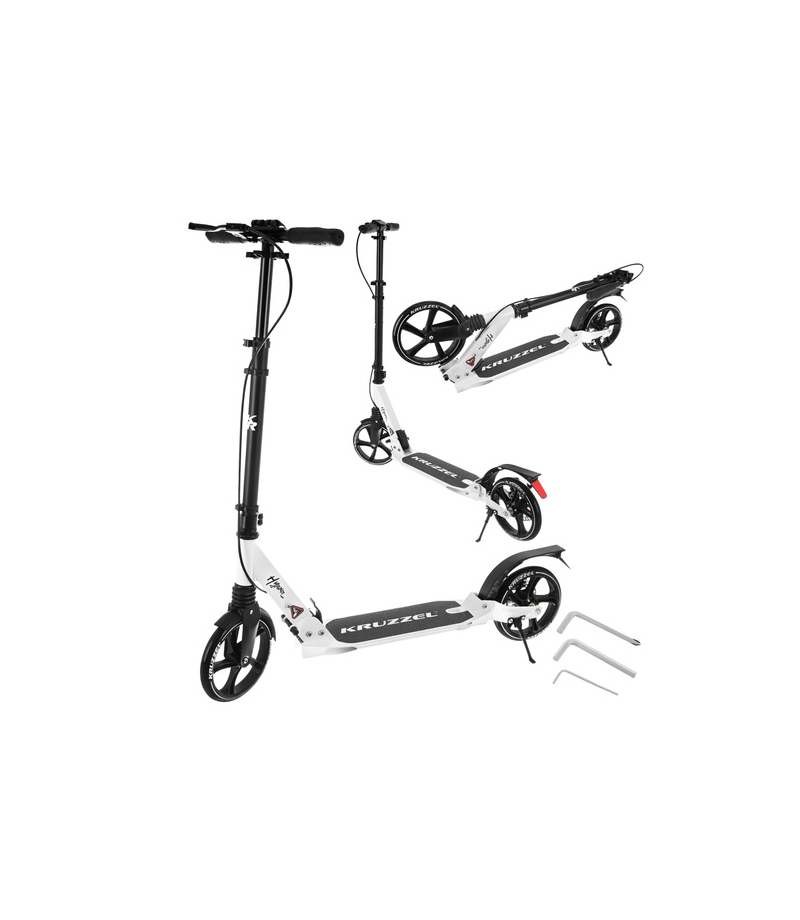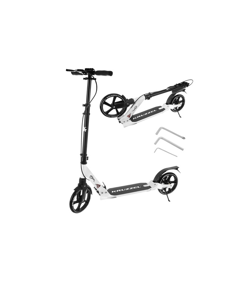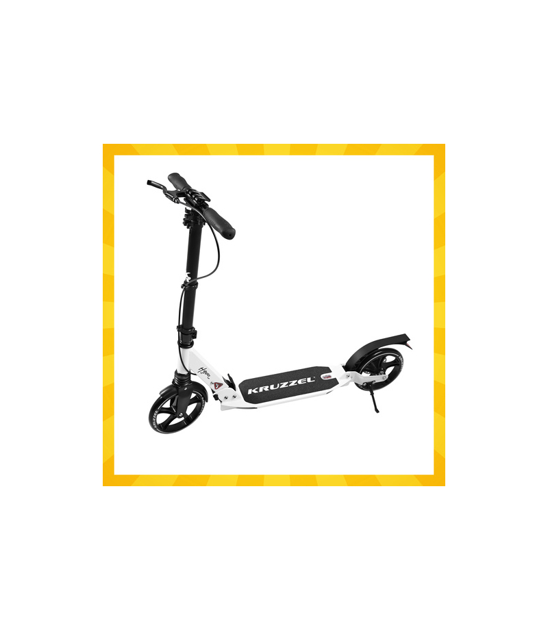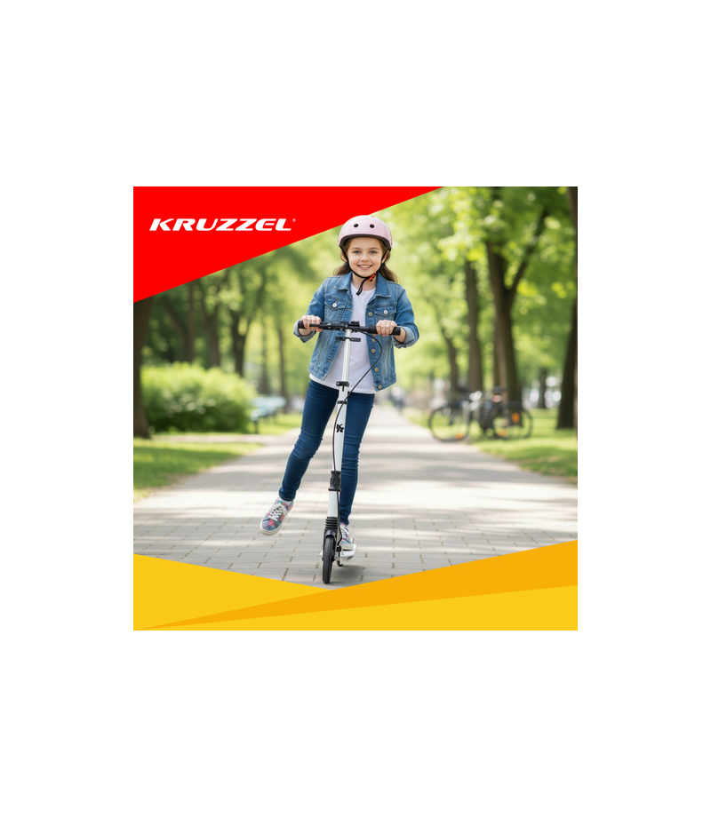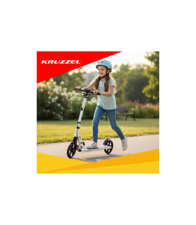 Hulajnoga składana KRUZZEL to solidny, miejski model klasy premium, zaprojektowany zarówno dla dzieci, jak i dorosłych . Duże gumowe koła 20 cm, łożyska ABEC-9 oraz podwójny system hamowania zapewniają płynną, bezpieczną i komfortową jazdę. Lekka, aluminiowa konstrukcja i szybkie składanie sprawiają, że idealnie sprawdzi się w codziennym użytkowaniu.