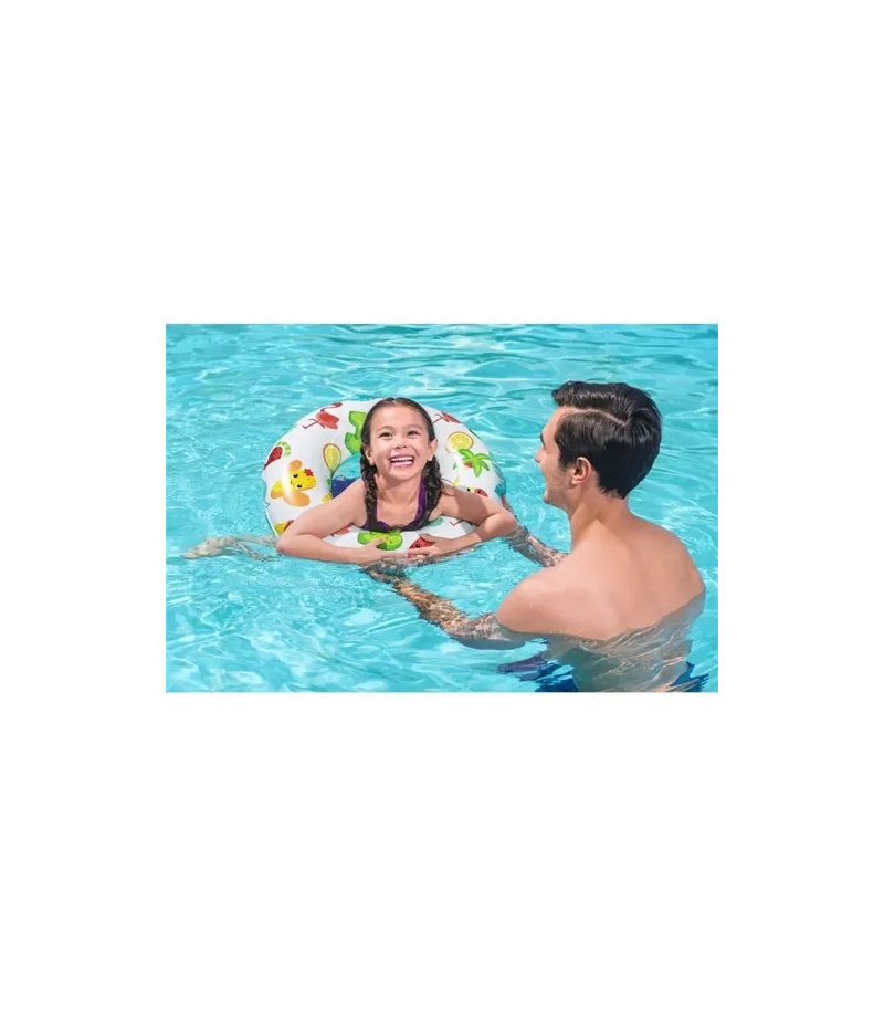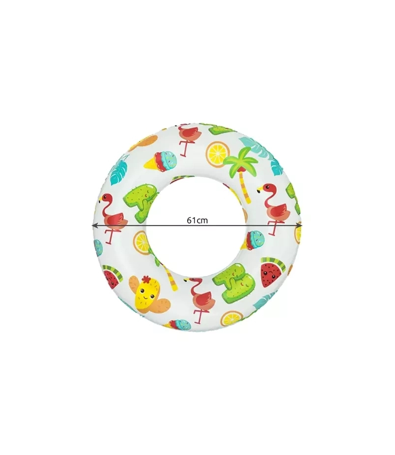 Koło do pływania o średnicy 61cm wykonane zostało z mocnego, półprzezroczystego PVC. Produkt nadaje się dla dzieci w wieku od 3 do 6 lat. Kółko w letnich, świeżych kolorach bardzo efektownie będzie reprezentowało się na każdej plaży. Nie zajmuje wiele miejsca, co sprawia że można je zabrać w dowolne miejsce.