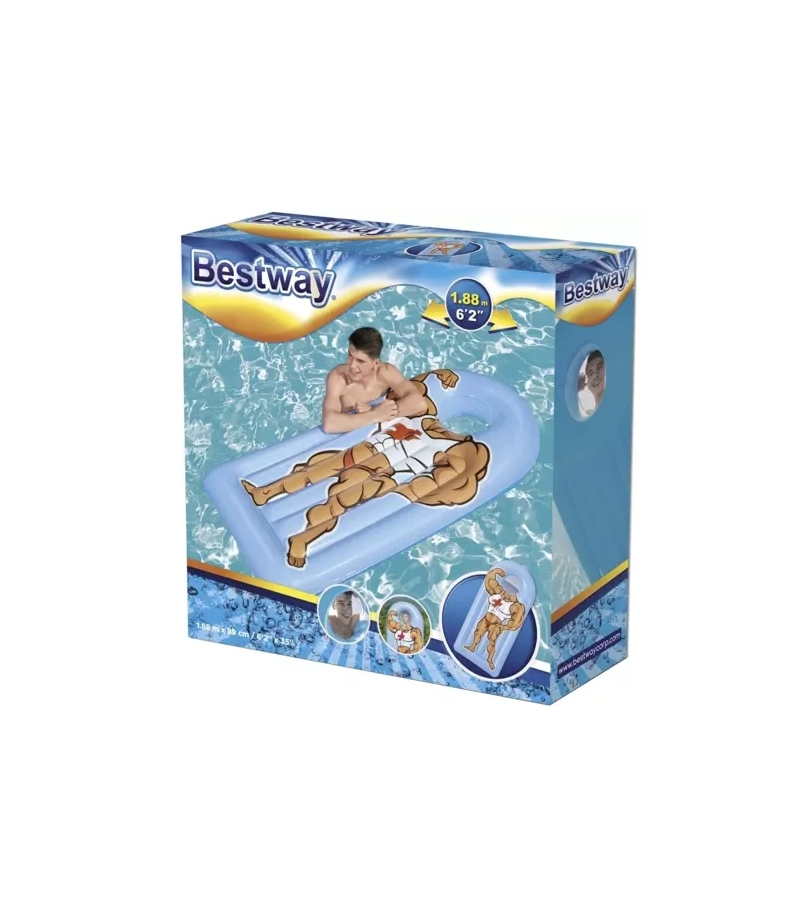 SPECYFIKACJA - kod produktu Bestway: 43421; kolory: niebieski z postacią ;materiał: winyl; konstrukcja: 2 komory powietrzne; maksymalne obciążenie: 90 kg; wymiary (dł/szer): 188x89 cm; waga: 1,250 kg; waga w opakowaniu: 1,390 kg