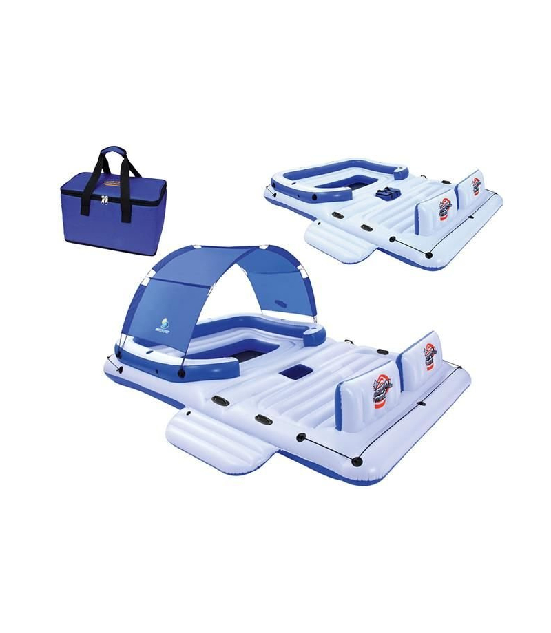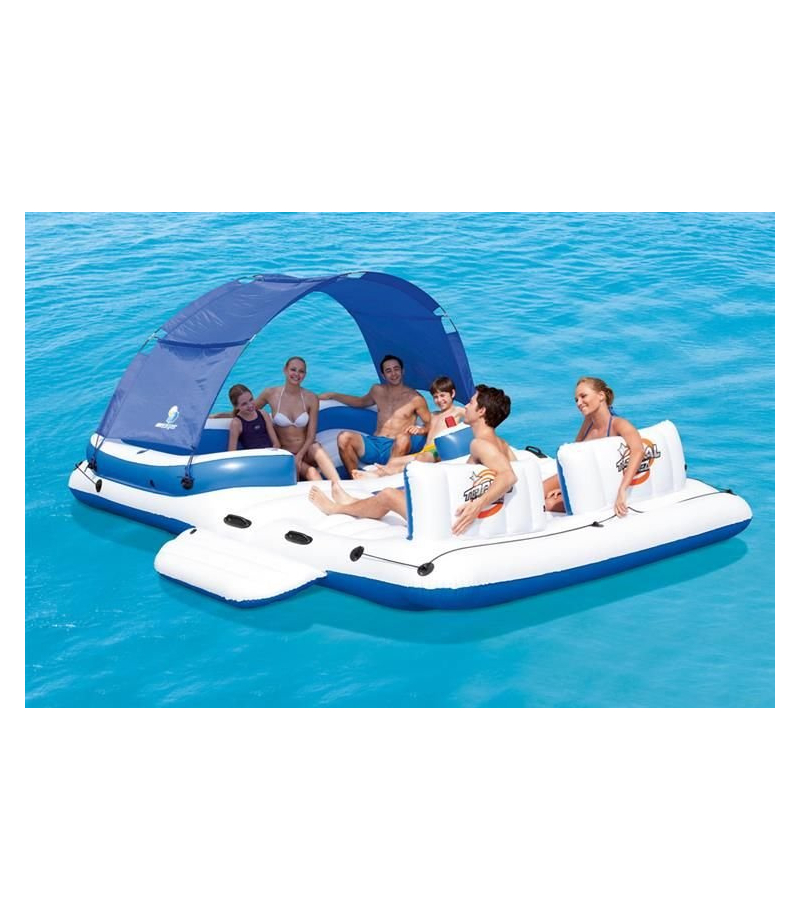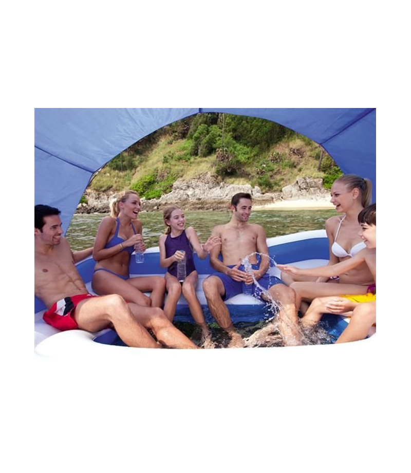 Pływająca wyspa firmy Bestway to komfortowy materac wykonany jest z miękkiego, lecz trwałego materiału PVC. Maksymalne obciążenie to aż 540 kilogramów. Demontowany daszek sprawia, że wyspa idealnie sprawdzi się zarówno podczas opalania, jak i przy relaksie w cieniu.