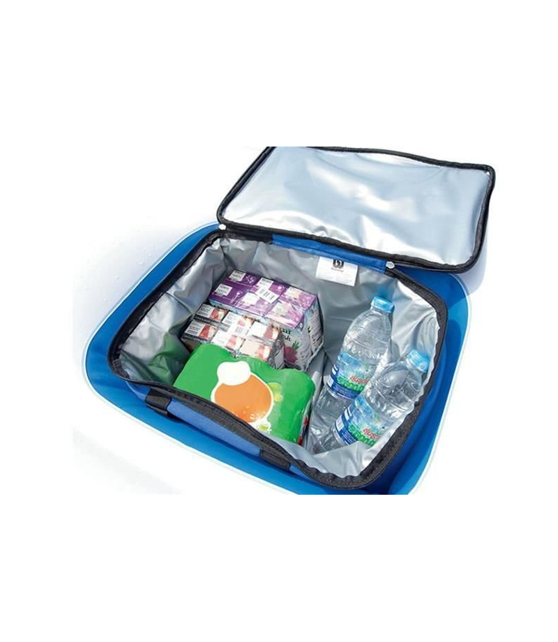 Materac o wymiarze 389x274cm jest przeznaczony aż dla 6 osób. Dodatkowo w materacu zastosowano system komór, które zapewniają odpowiednią sprężystość materaca. Do zestawu dołączono łatkę naprawczą. Przenośna torba termoizolacyjna pozwoli na schłodzenie napojów w gorące dni. Wyspa posiada wbudowane uchwyty i praktyczną linkę ułatwiającą holowanie i wchodzenie na wyspę. W środku basenik do chłodzenia nóg.