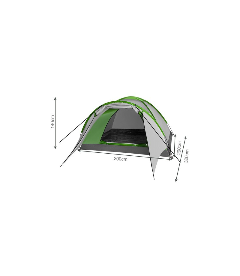 Odpoczynek na łonie natury to jeden z najprzyjemniejszych sposobów spędzania wolnego czasu. Wygodny, czteroosobowy namiot turystyczny doskonale sprawdzi się podczas wszelkiego rodzaju wypraw turystycznych. Można go zabrać ze sobą zarówno na biwak, spływ kajakowy, wycieczkę rowerową bądź piesze wycieczki. Kwadratowa sypialnia mieści do czterech osób, a zapinane na suwak wejście gwarantuje prywatność. Namiot posiada także moskitierę, która zapewni izolację przed owadami oraz dopływ świeżego powietrza, co jest szczególnie istotne podczas gorących, letnich dni i nocy. Prawidłową wentylację umożliwia również szczytowy wywietrznik z moskitierą, który łatwo osłonić przed deszczem specjalną nakładką dołączoną do kompletu. W zależności od warunków atmosferycznych, można ją dowolnie zdejmować lub zakładać. Ścianki i podłoga namiotu wykonane są z wodoodpornego materiału.