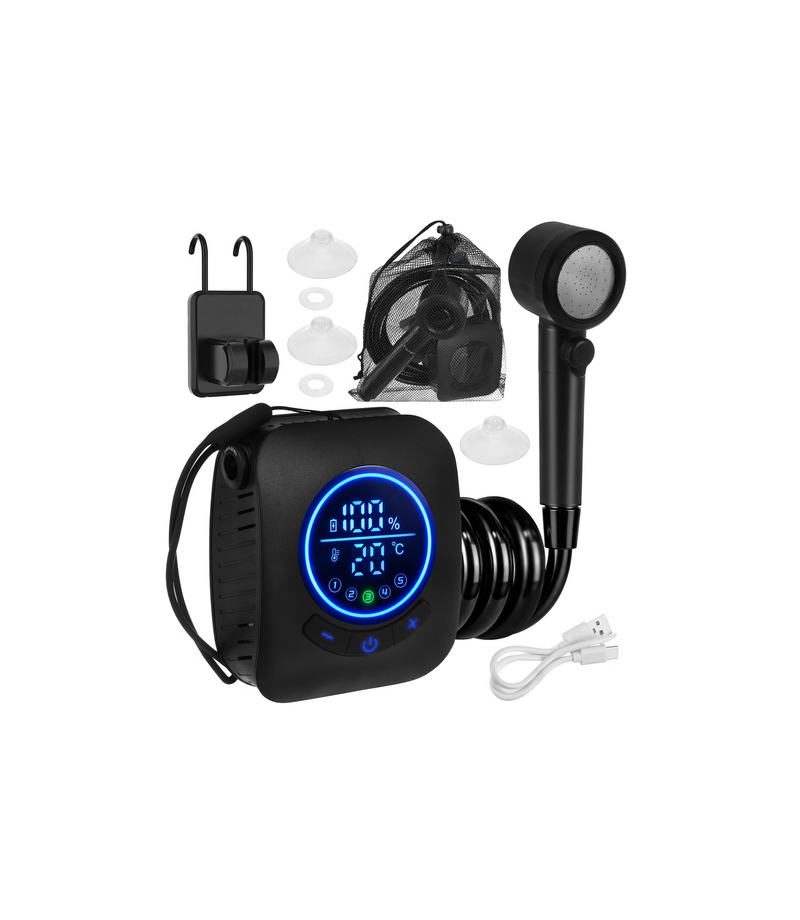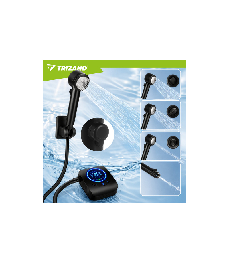 Prysznic turystyczny TRIZAND 8000mAh przenośny kempingowy z wyświetlaczem LED IPX8 Prysznic turystyczny to niezawodne rozwiązanie dla osób, które potrzebują wygodnego dostępu do wody w każdych warunkach - na campingu, plaży czy w ogrodzie. Dzięki wydajnej baterii, regulowanemu strumieniowi i nowoczesnemu wyświetlaczowi masz pełną kontrolę nad komfortem użytkowania. Produkt polskiej marki TRIZAND, wykonany przez polskiego producenta, to połączenie mobilności, technologii i wysokiej jakości. Najważniejsze zalety prysznica turystycznego TRIZAND Polska marka TRIZAND - produkt od polskiego producenta, sprawdzona jakość i trwałość. Bateria 8000 mAh - aż do 180 minut pracy Wydajność 5-10 l/min - stabilny i komfortowy strumień wody. Wyświetlacz LED - kontrola temperatury i poziomu baterii. 5 poziomów ciśnienia + 4 tryby strumienia - pełne dopasowanie. Wodoszczelność IPX8 - najwyższa klasa wodoszczelności, bezpieczna praca w wodzie. Certyfikat CE - potwierdzona jakość i bezpieczeństwo. Specyfikacja techniczna prysznica... Więcej szczegółów