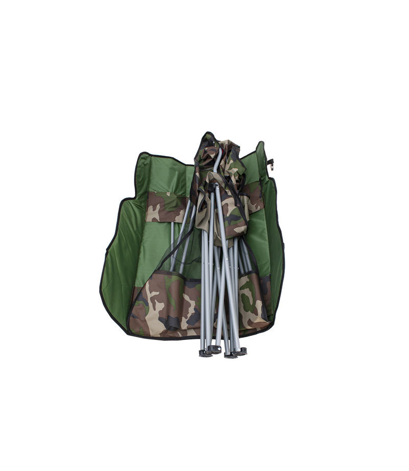 KOMFORTOWE – krzesło wędkarskie posiada specjalne miejsce na kubek lub butelkę z napojem. Krzesło można szybko i łatwo złożyć i rozłożyć. Złożone można przechowywać i łatwo transportować – daszek zamienia się w wygodny zapinany pokrowiec z uchwytem. Uchwyt sprawdzi się do noszenia w ręku lub na ramieniu.