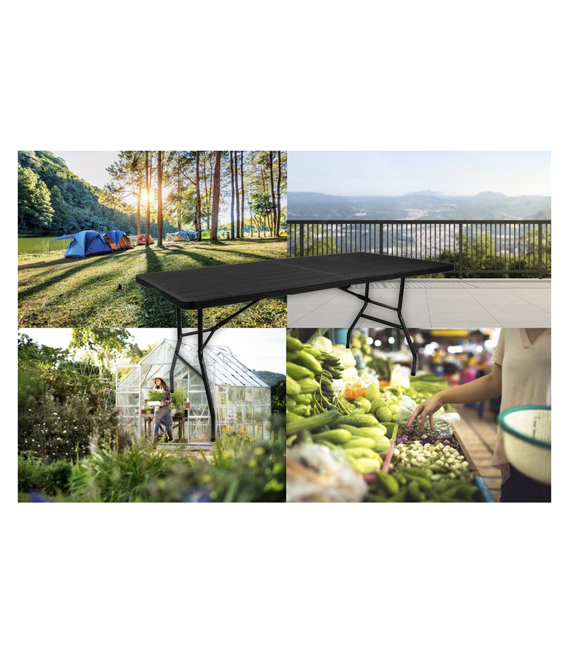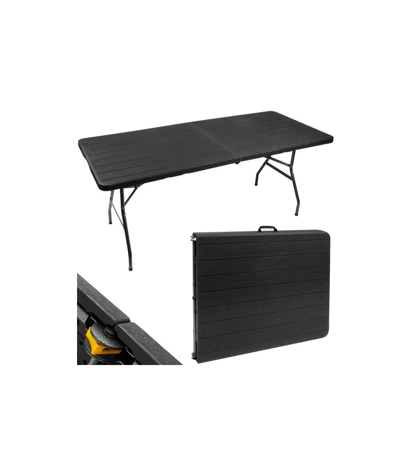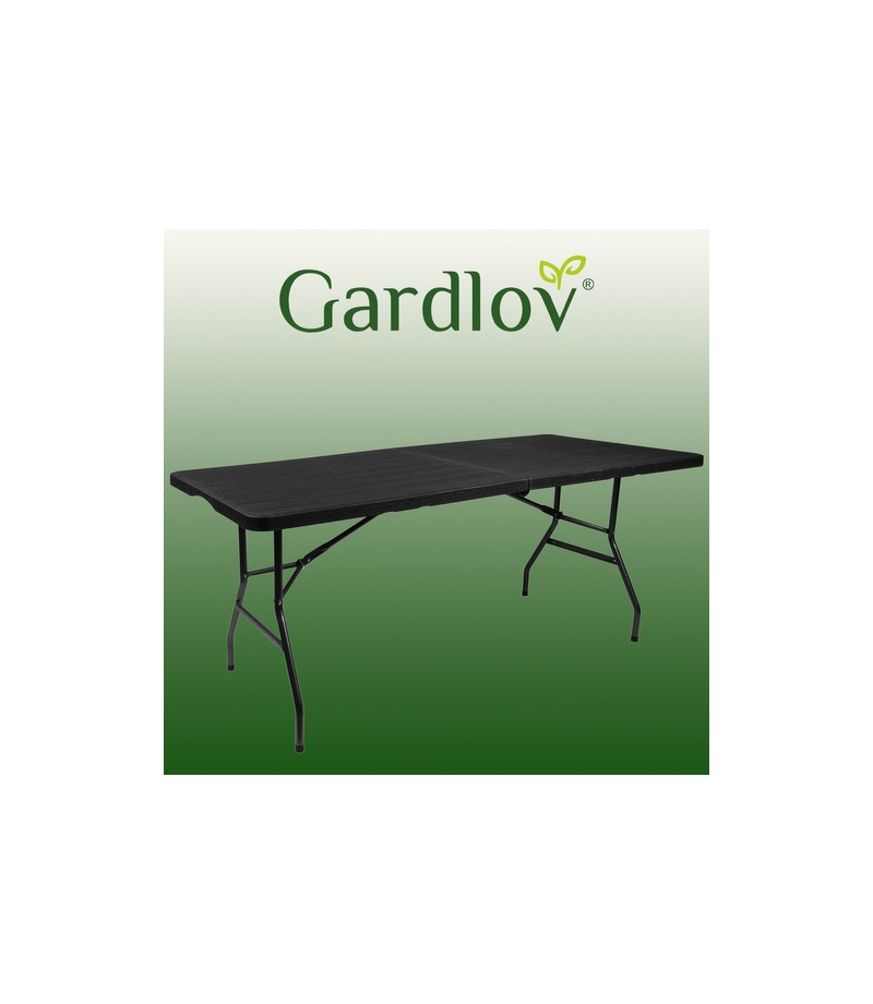 SPECYFIKACJA – producent: Iso Trade; marka: Gardlov; składany: w formę walizki; materiał: blat – HDPE, konstrukcja – stal, pozostałe – PVC + PE + ABS; rama: fi 25 x 1 mm; wymiary: 180/74/74 cm; wymiary złożonego stołu: 90/74/8 cm; waga: 13,1 kg; waga w opakowaniu: 14,1 kg.