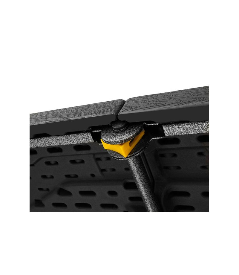 SOLIDNA KONSTRUKCJA – składany stół wyróżnia się dużą wytrzymałością i stabilnością, dzięki czemu wytrzyma bez problemu większe obciążenie i przetrwa znacznie dłużej niż jeden sezon. Blat stołu jest gruby i wykonany z mocnego tworzywa HDPE. Rama natomiast jest ze stali malowanej proszkowo, a rurki mają fi 25x1mm.