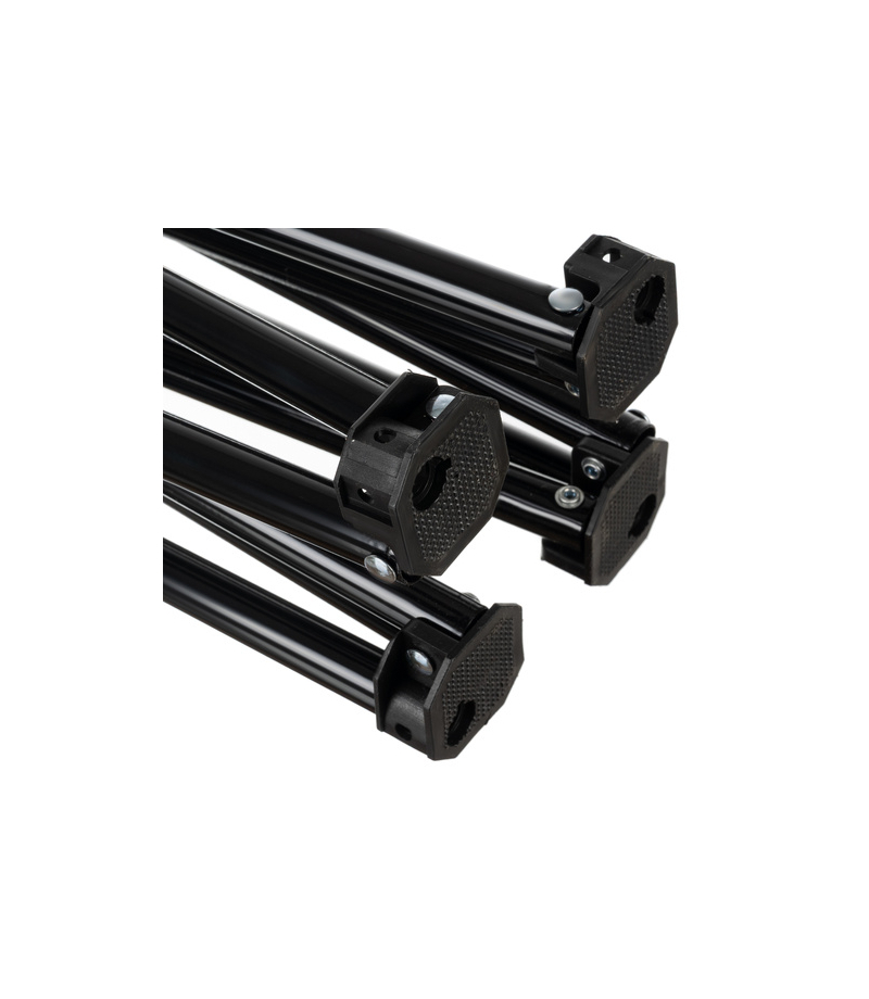 zestaw radzi sobie na nierównym podłożu - stabilne, płaskie stopki zapobiegają zapadaniu się w miękką ziemię, a możliwość dodatkowego przymocowania do podłoża gwarantuje maksymalną stabilność