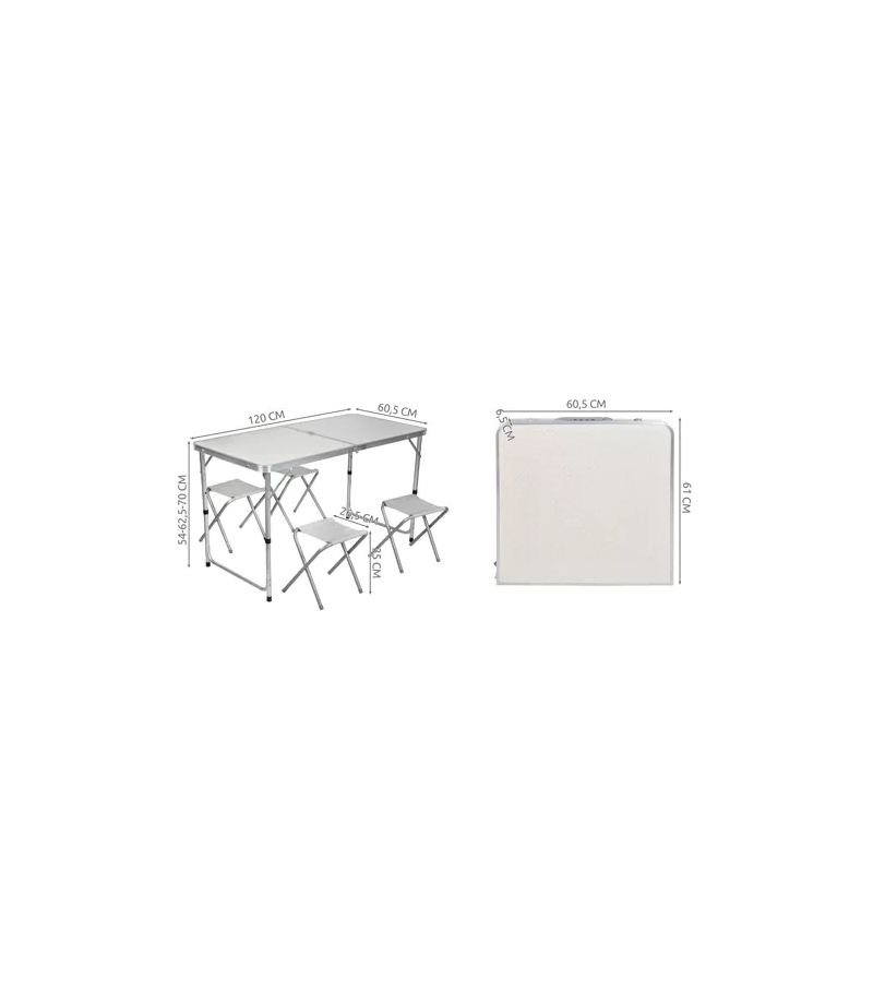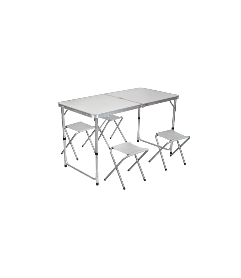 Zestaw kempingowy z 4 krzesełkami, zarówno dla dzieci jak i dorosłych doskonale sprawdzi się na wyprawach poza miasto, ale nie tylko - dzięki możliwości regulacji sprawdzi się doskonale jako zestaw podczas przyjęcia urodzinowego dla Twojego dziecka. Waży zaledwie niecałe 8kg, a dzięki możliwości przenoszenia go w formie walizki z uchwytem jego transport nie stanowi żadnego problemu. Blat stołu jest jednocześnie walizką, w której możemy schować krzesełka, posiada zabezpieczenia, dzięki którym nie ma ryzyka, że podczas transportu walizka się nie otworzy. Stół zaprojektowany został z ciekawym wzorem jest bardziej praktyczny podczas wycieczki niż biały. Kompaktowe wymiary pozwalają na przechowywanie go w kamperze, przyczepie kempingowej czy po prostu w bagażniku. Podczas wyjazdów bardzo ważna jest dobra organizacja miejsca, dlatego tak ważne jest, by produkt zajmował jak najmniej miejsca.